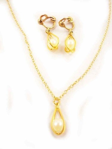 Vintage 1950s Princess Pearls Goldtone Necklace Earrings W Certificate