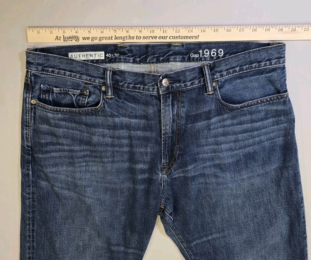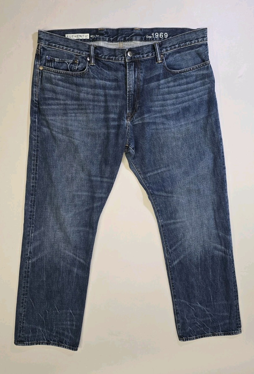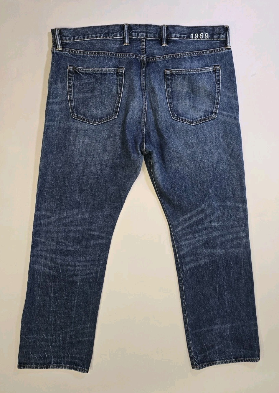Gap 1969 Jeans Mens 40x32 Dark Blue Authentic Straight Denim Whiskered Cotton