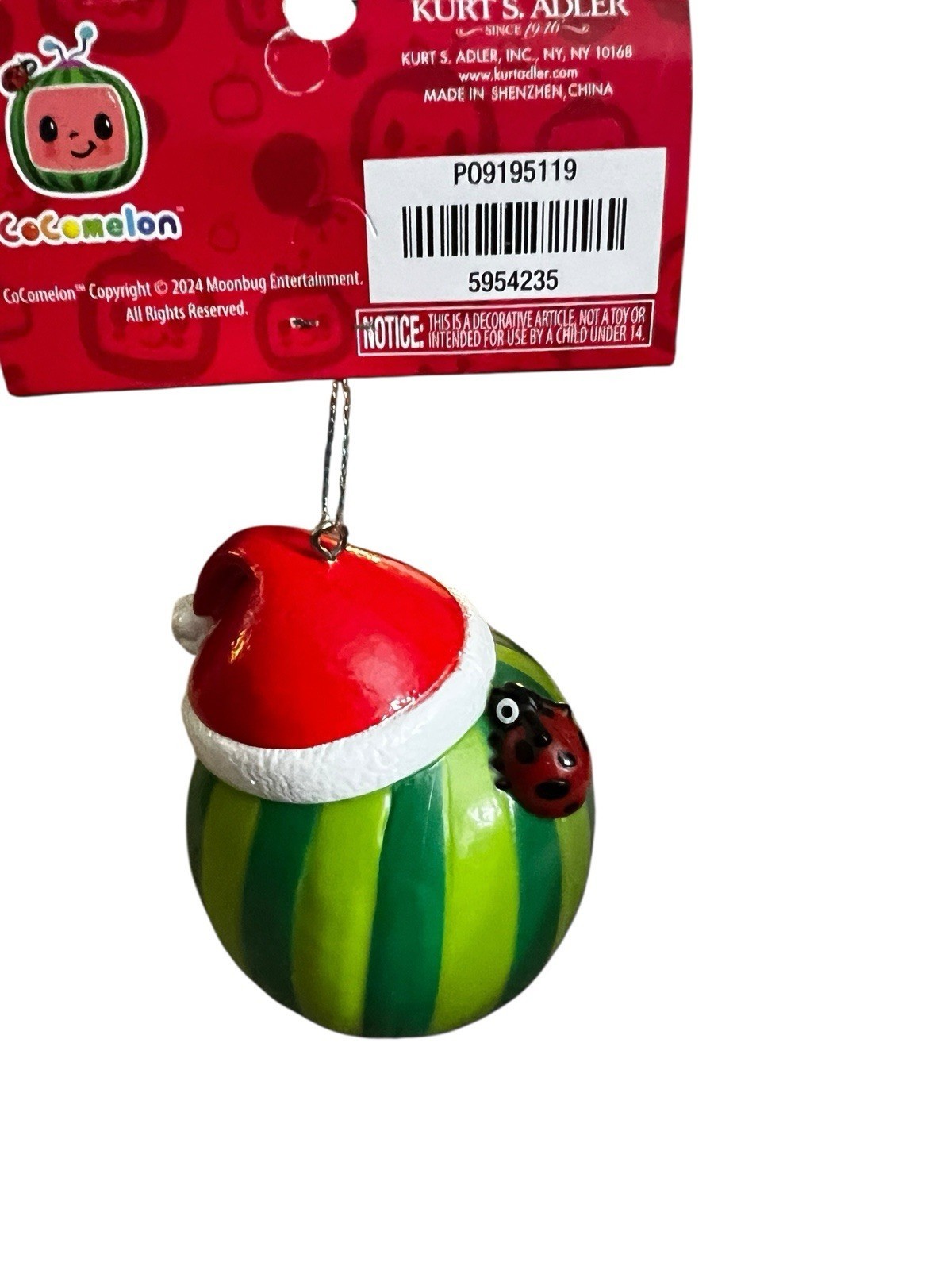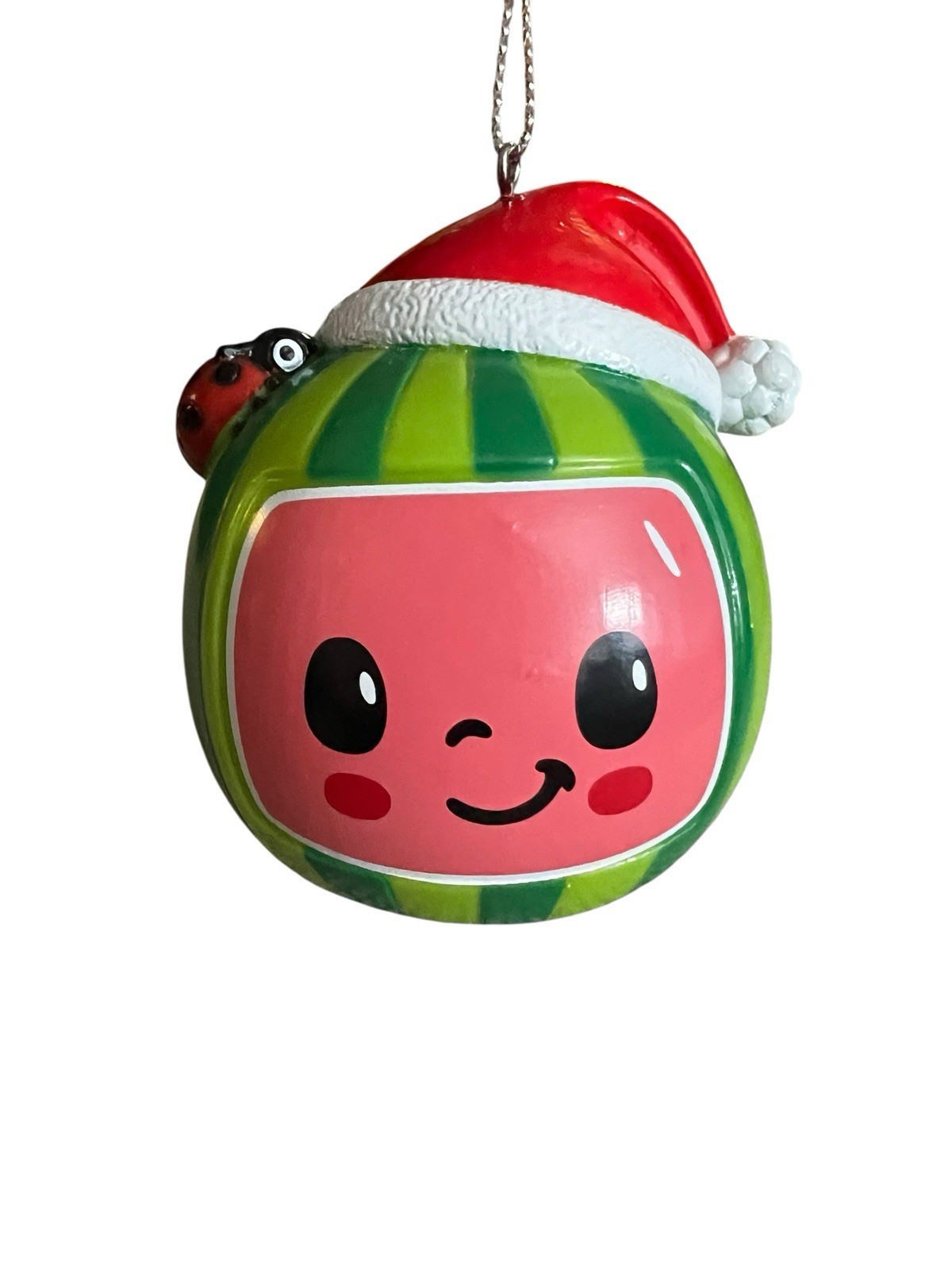 Kurt Adler Cocomelon Watermelon with Santa Hat Christmas Ornament Ladybug