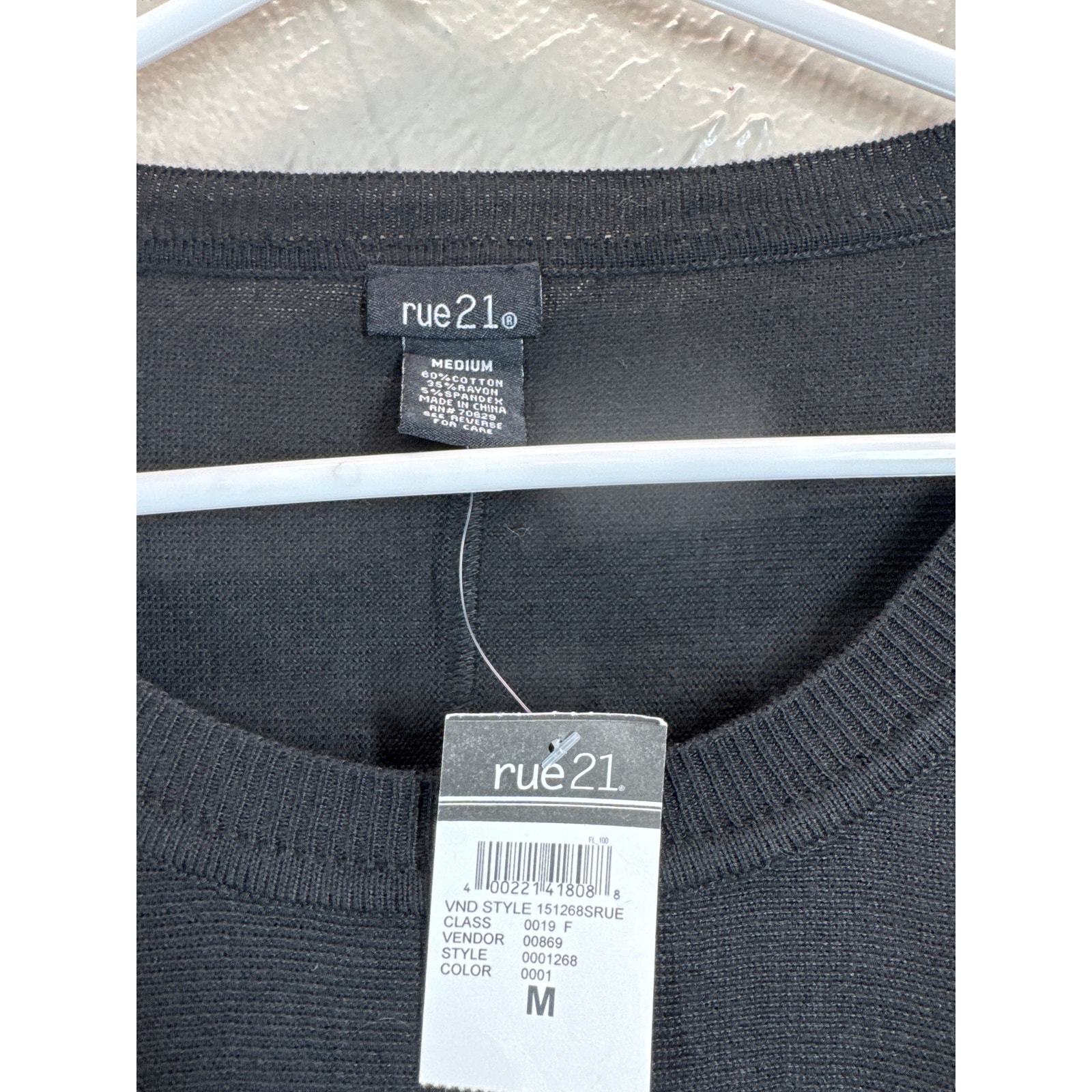 Rue 21 Black Hi Low Cotton Blend Tunic Sweater Top Women?s Size Medium NWT