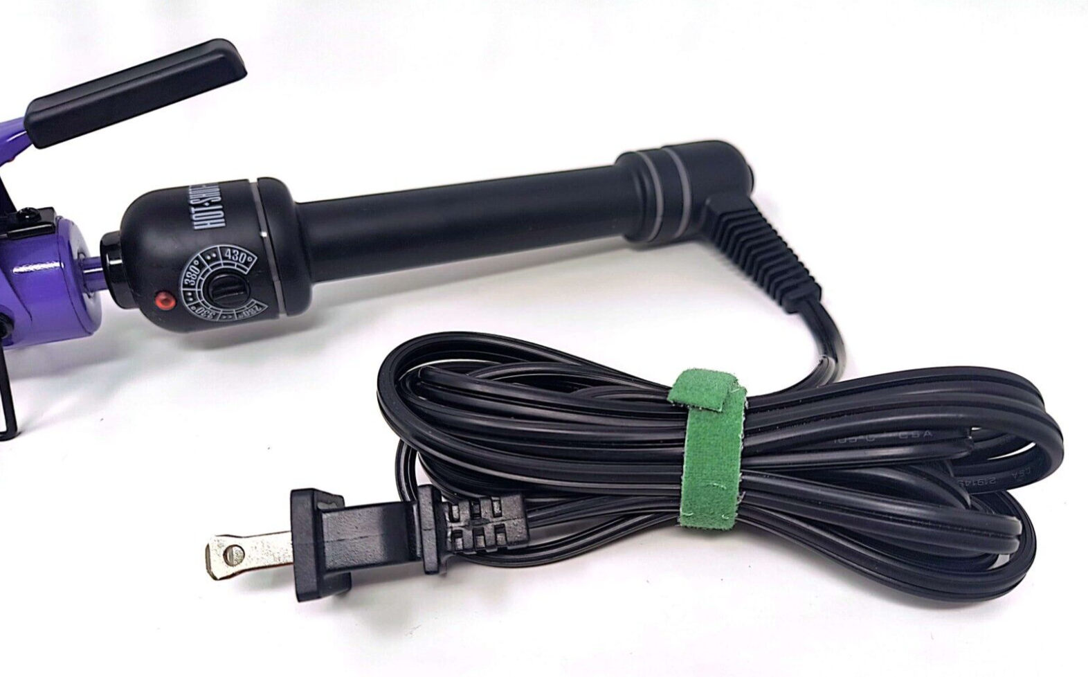 Achieve salon-quality curls with the Hot Shot Tools 1 1/4" Salon Curling Iron. Featuring a titanium barrel for even heat distribution, this curling iron heats up to 450 F, ensuring smooth, frizz-free curls. Its adjustable heat settings, cool tip, and swivel cord make styling easy and efficient. Compact and travel-friendly, this purple beauty tool is a must-have for effortless styling. Tested and working, it has some wear and scratches. Perfect for on-the-go touch-ups. Ship to USA and Canada, and international rates available upon request. Get yours today and transform your hair routine!