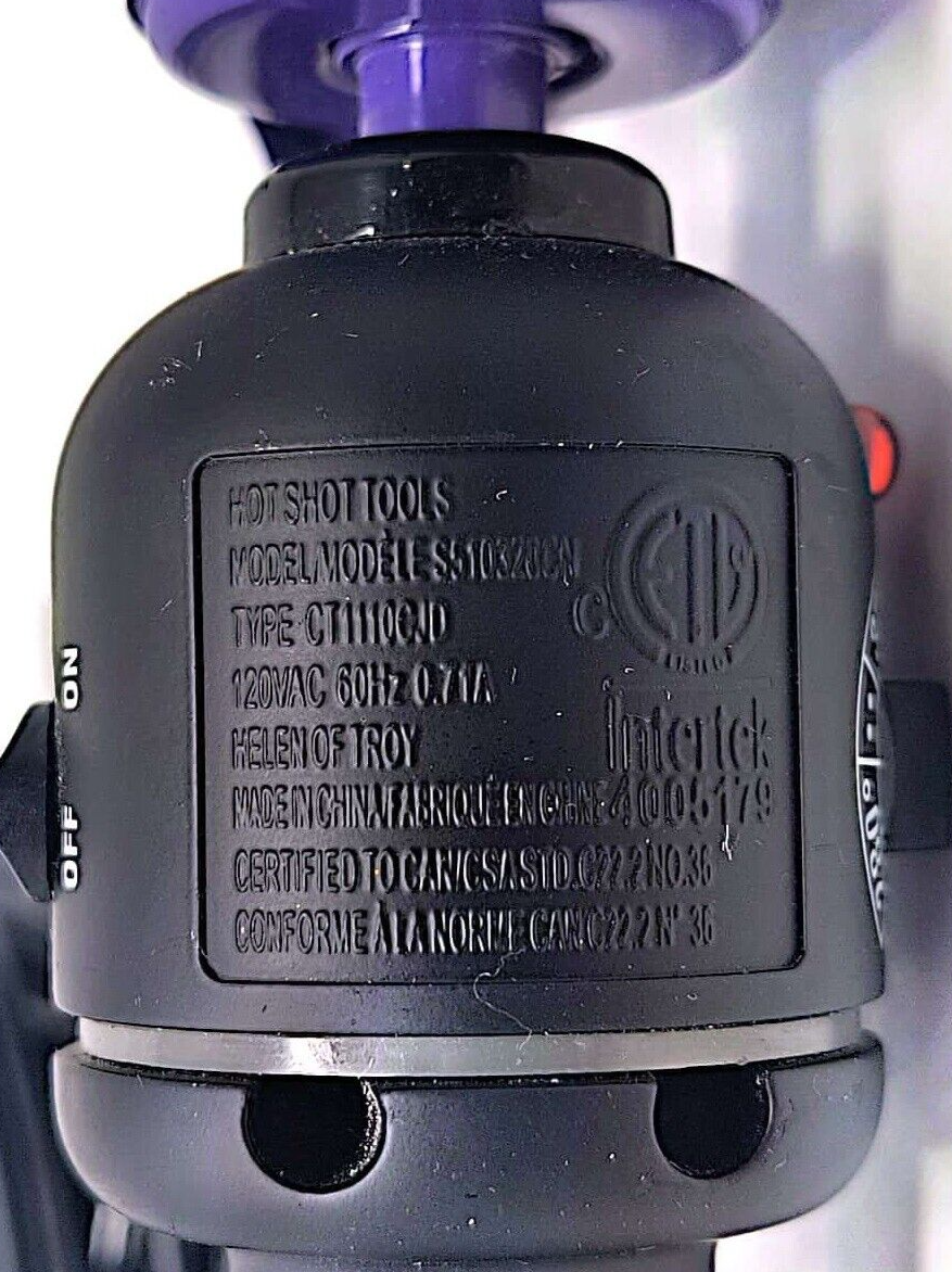 Achieve salon-quality curls with the Hot Shot Tools 1 1/4" Salon Curling Iron. Featuring a titanium barrel for even heat distribution, this curling iron heats up to 450F, ensuring smooth, frizz-free curls. Its adjustable heat settings, cool tip, and swivel cord make styling easy and efficient. Compact and travel-friendly, this purple beauty tool is a must-have for effortless styling. Tested and working, it has some wear and scratches. Perfect for on-the-go touch-ups. Ship to USA and Canada, and international rates available upon request. Get yours today and transform your hair routine!