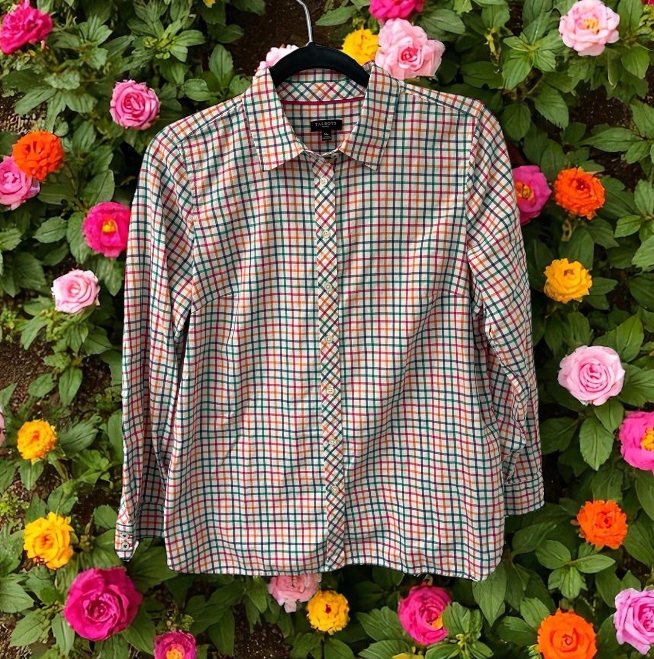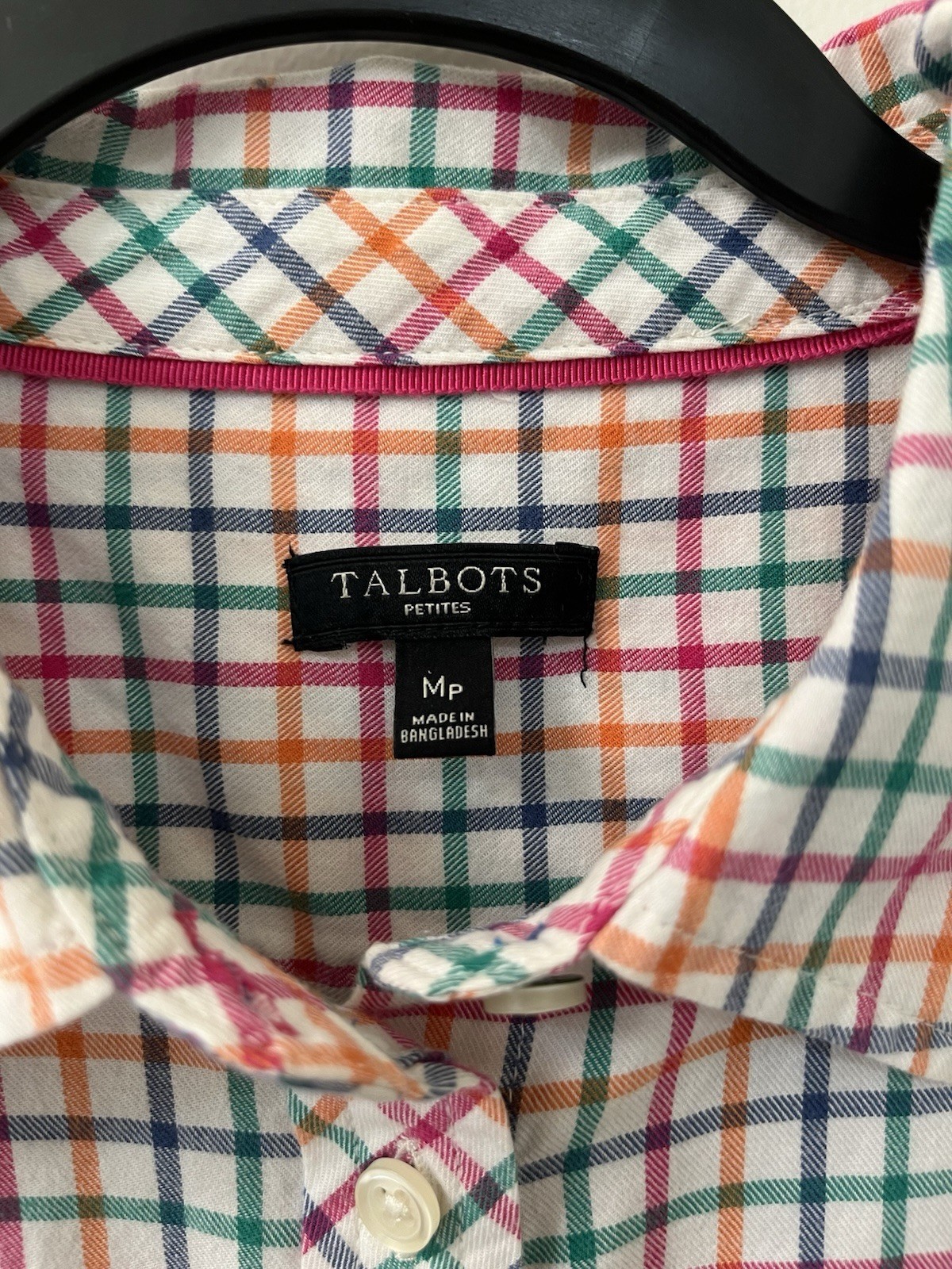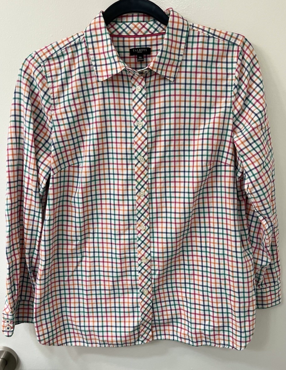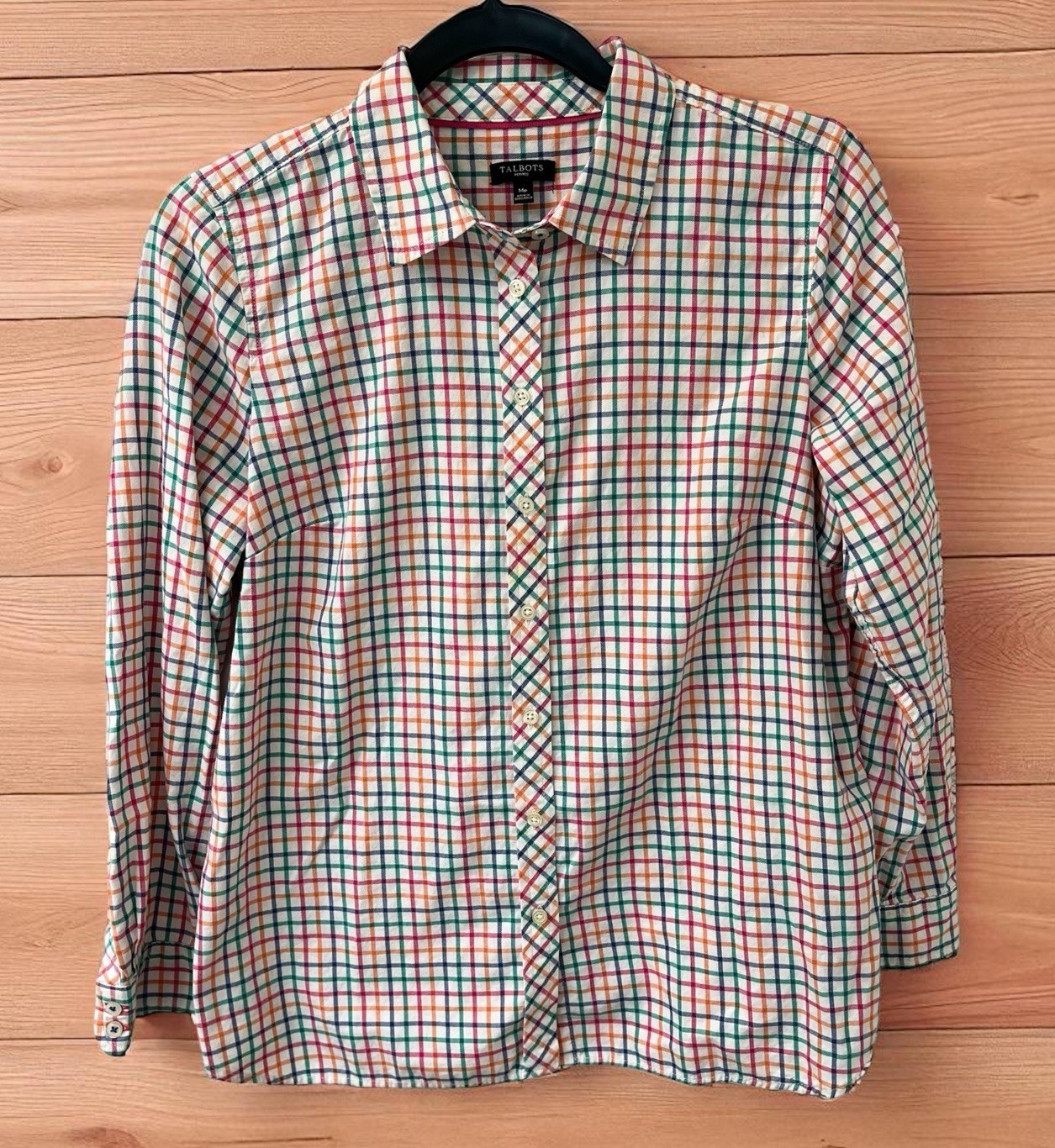 Talbots Shirt Women’s SIZE M Petite Plaid Button Front multicolor 100% Cotton