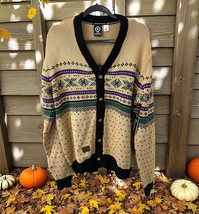 This NWT Vintage LRG Knit Button Up Cardigan sweater in Size XL is a stylish choice for women looking for a casual yet cozy sweater. Made of cotton in a vibrant multicolor knit, this V-neck cardigan with long sleeves is perfect for the winter, fall, and spring seasons. The knit fabric adds a unique touch to this vintage piece from the brand LRG, making it a versatile addition to any wardrobe. Please let me know if you have any questions!
