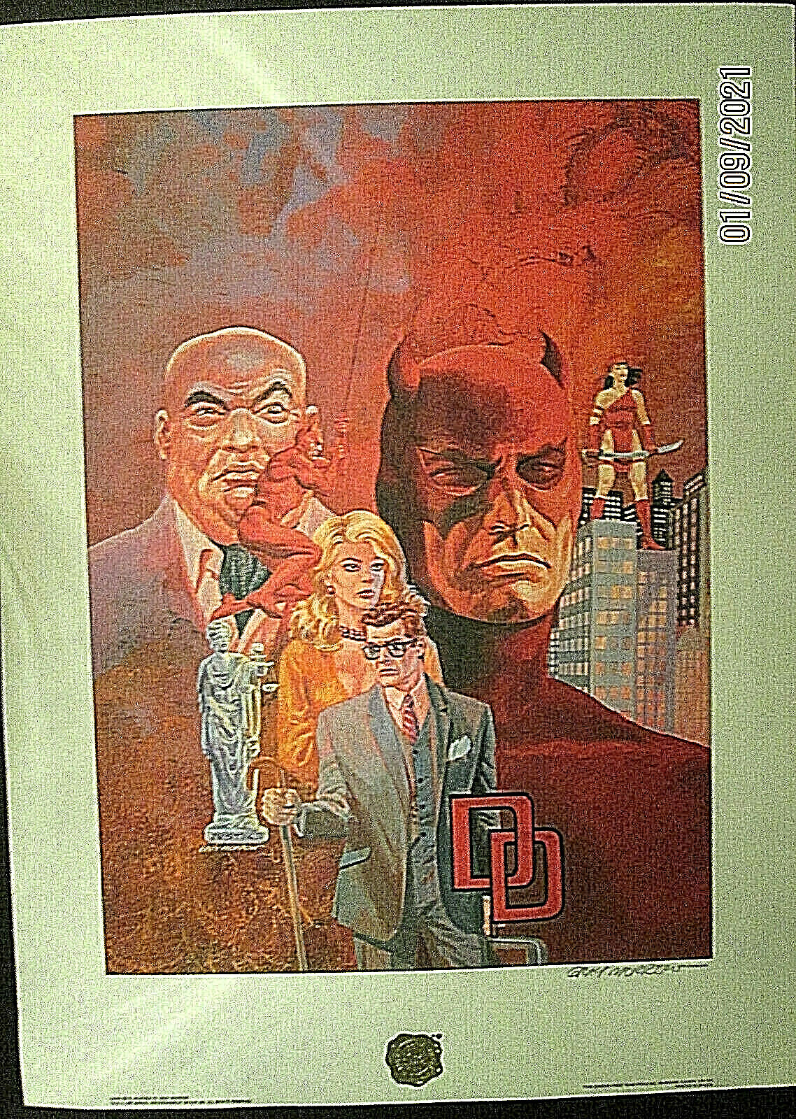 GRAY MORROW:DAREDEVIL (ORIGINAL SIGN & STAMP LARGE SIZE PRINT ARTWORK