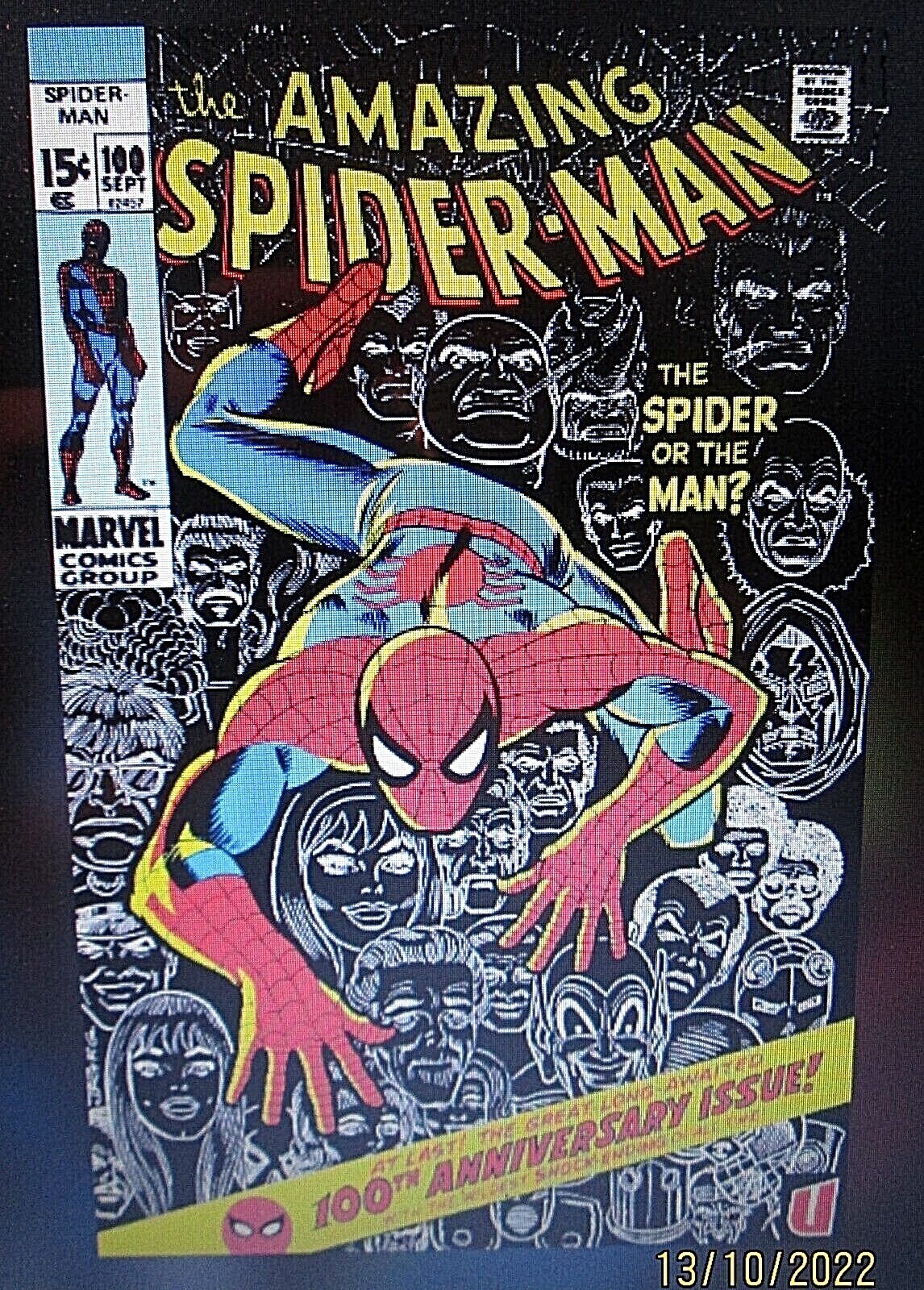 GIL KANE: (ORIG, 11X17 SPIDERMAN DRAWING ,DRAWN IN THE 1970,S, INSPIRED AMAZING SPIDERMAN # 100 COVER THAT WAS DRAWN BY (JOHN ROMITA SR), THE INTERIOR ARTWORK WAS BY GIL KANE, KANE WAS GOING TO DO THE COVER HIMSELF (KANE TOOK ROMITA,S COVER TO DO THIS HOMAGE TO THIS CLASSIC ICONIC COVER (NOTE: WAS DRAWN ON BACK OF THIS 11X17 OR MORE POSTER OF GIL KANE HIMSELF AND THE DRAWING CAME FROM HIS PERSONAL COLLECTION (SPIDERMAN FIGURE WAS DRAWN BY GIL KANE HIMSELF ON BACK OF THIS POSTER) THE REST IS COMIC BOOK HISTORY
