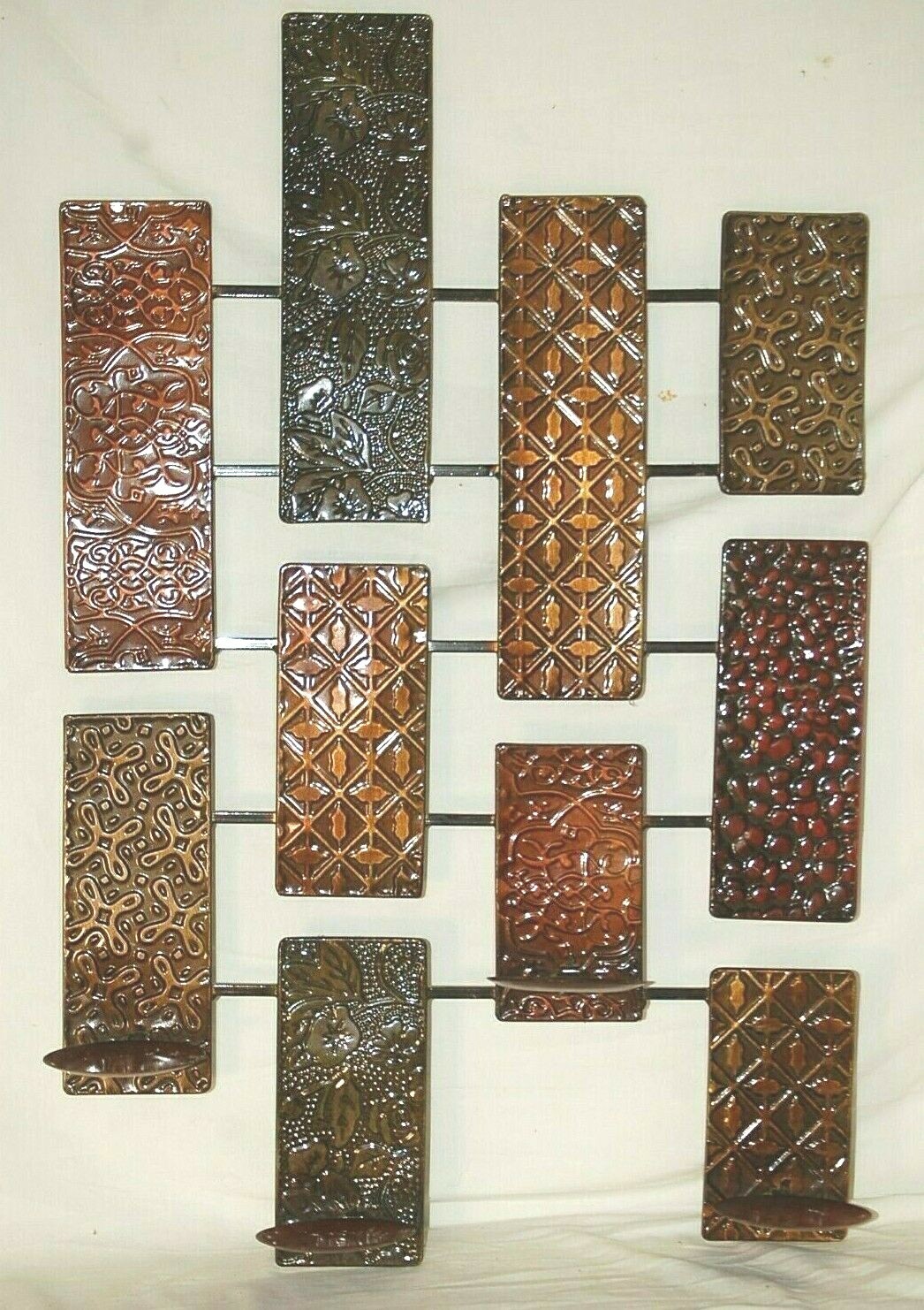 Modern Metal Wall Art Hanging Abstract Sculpture 4 Red Candle Holders Home Decor