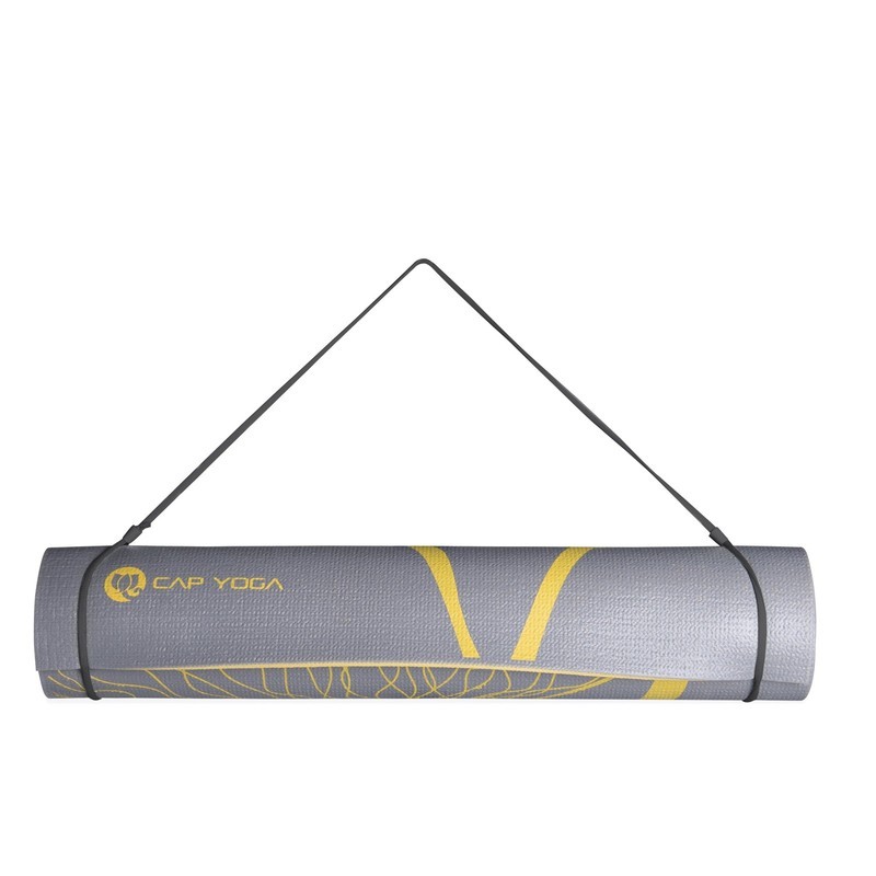Increase the comfort and tranquility of your floor exercises with the CAP yoga mat. Beautiful, practical, and comfortable, it provides 5mm of soft, textured surface that is well suited for Pilates and floor stretching exercises. This lightweight and durable mat is suitable for home, gym, or studio use and is easy to transport using the included carry strap. After completing your routine, simply roll up and store until next time. Choose a Dahlia print on a mustard backdrop or the reverse side Ginkgo print on a London stone backdrop to match your mood.