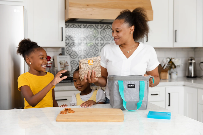Sized to fit most frozen meals, plus snacks and drinks Larger bottom accommodates packing meals flat Folds flat for convenient storage Back slip pocket Leak resistant, easy to clean, antimicrobial liner