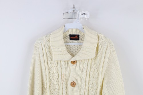 Vintage 70s Streetwear Mens Medium Chunky Cable Knit Fisherman Cardigan Sweater