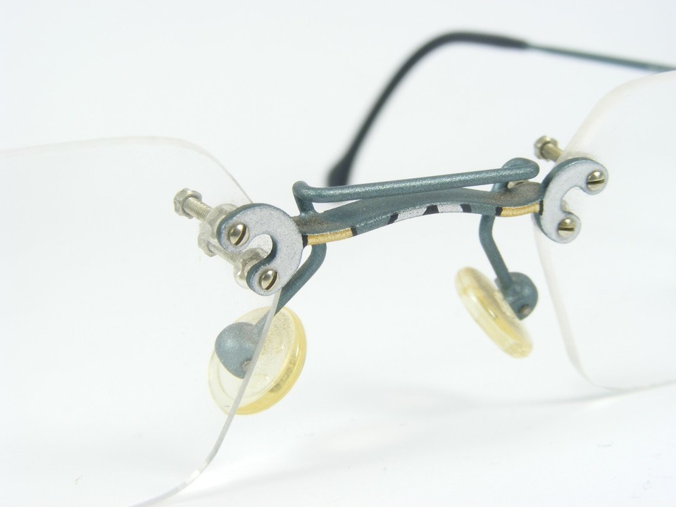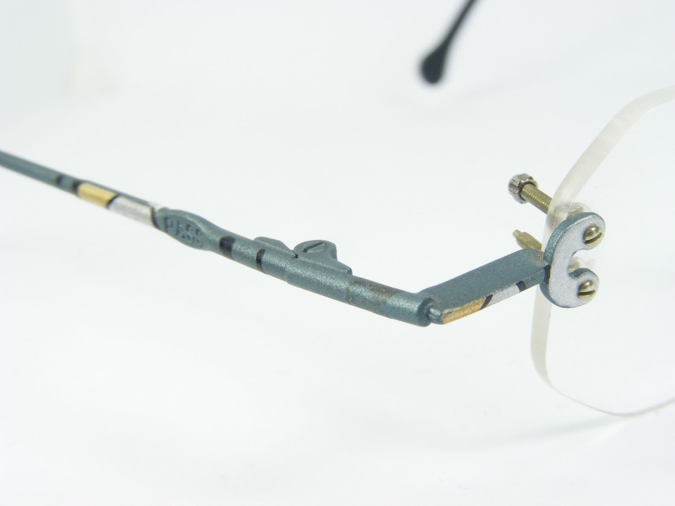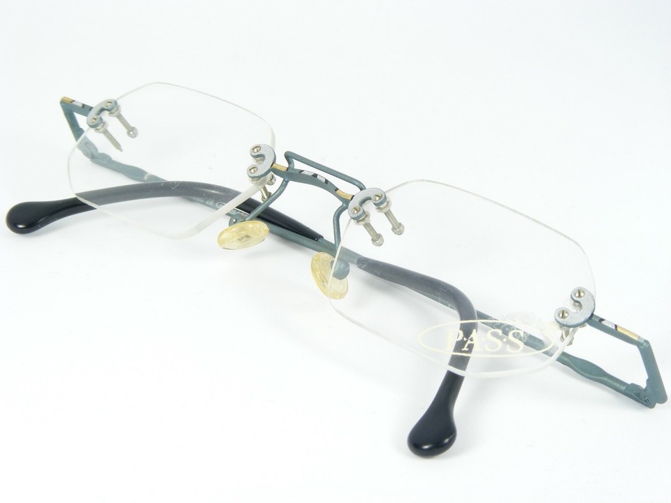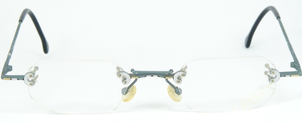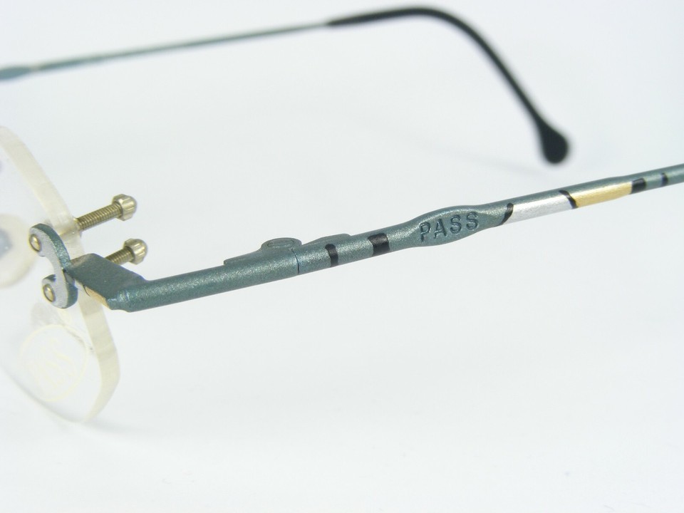 Vintage PASS 027-206 LUNETTES VERT-GRIS/ARGENT/OR 46-20-140mm. (G482)