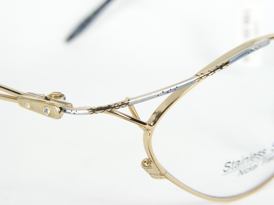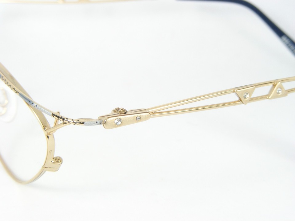 Vintage MEYER OPTIC 366 3 Or Bleu Lunettes Monture Cristaux 50-18-135