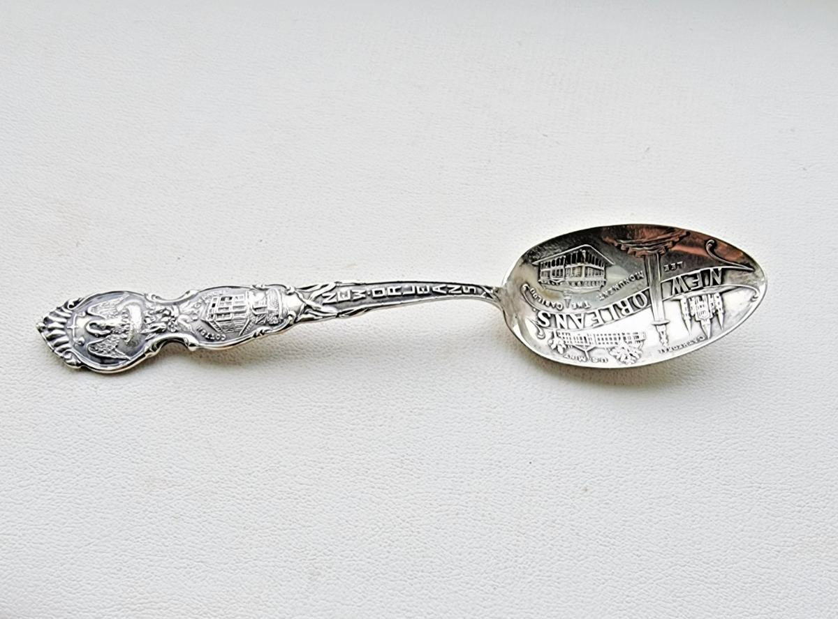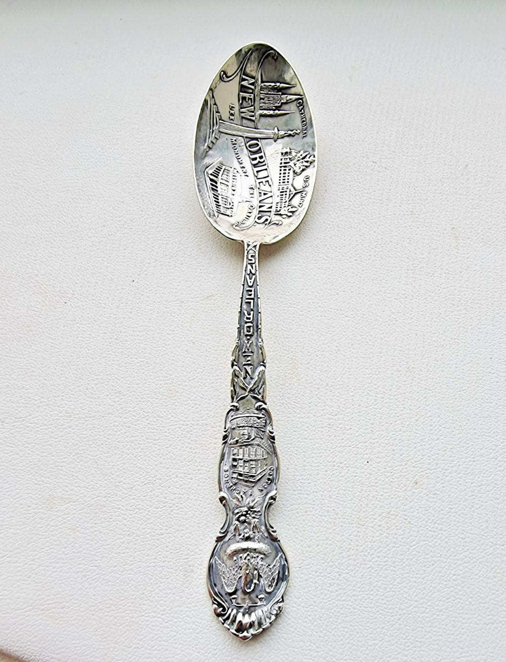 VINTAGE 925 STERLING SILVER NEW ORLEAN SOUVENIR COLLECTIBLE SPOON 5in. 14g