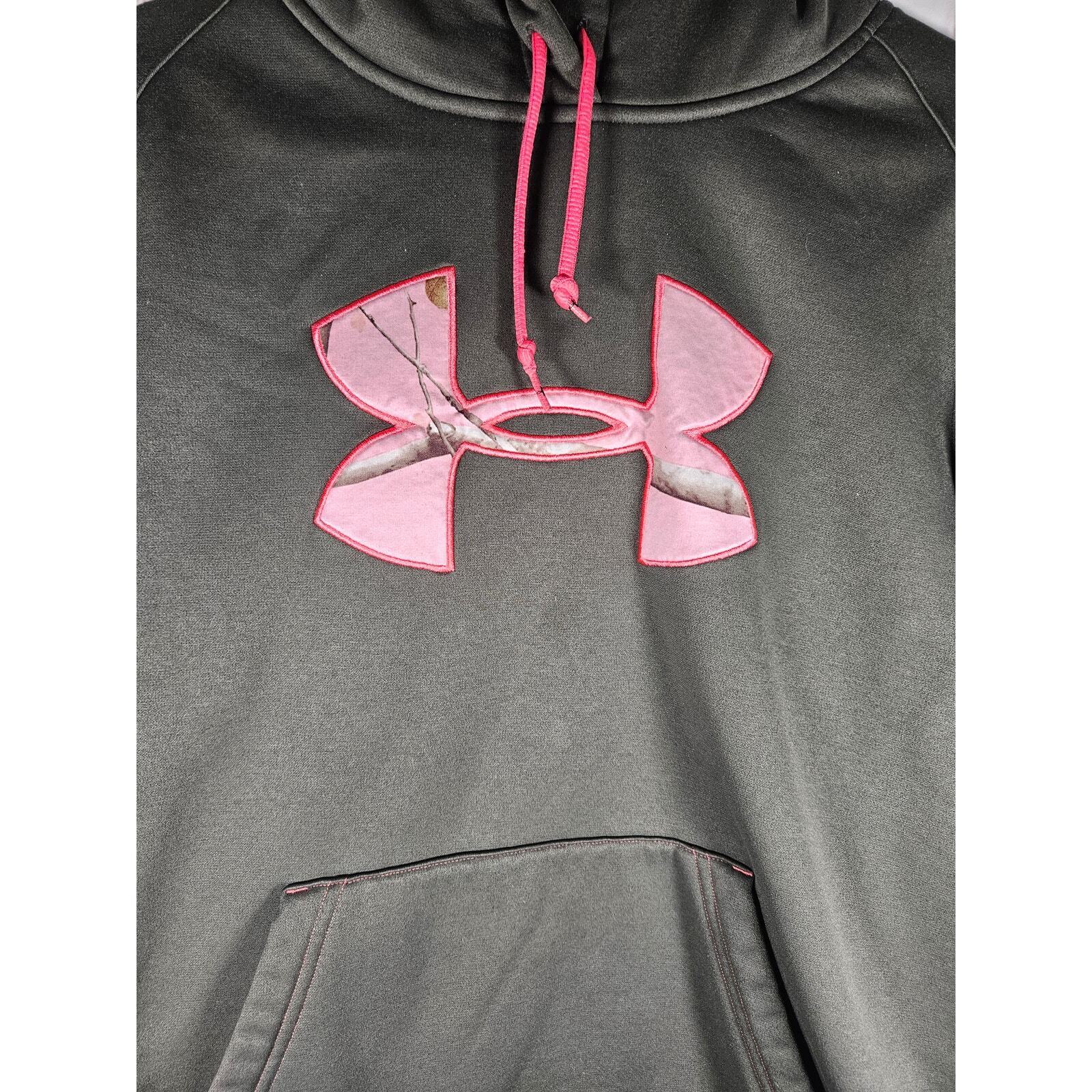 Under Armour Women's Hoodie Sweatshirt Army Green Pink Logo Stitching Large
