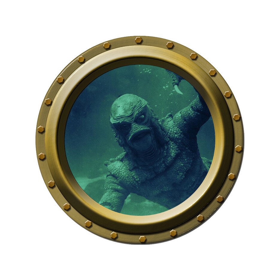 The Creature from the Black Lagoon Watches You Brass Color Porthole Wall Decal