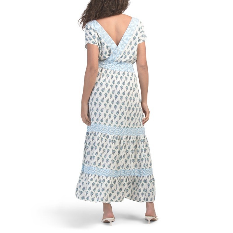 RACHEL ZOE Linen Blend Dolman V-neck Smocked Maxi Dress Retail $70