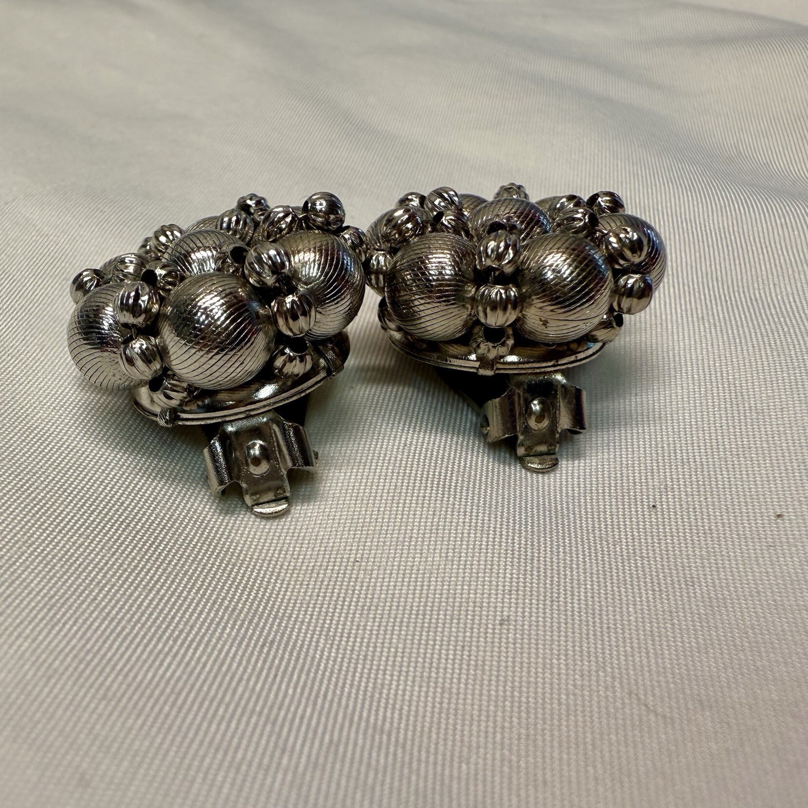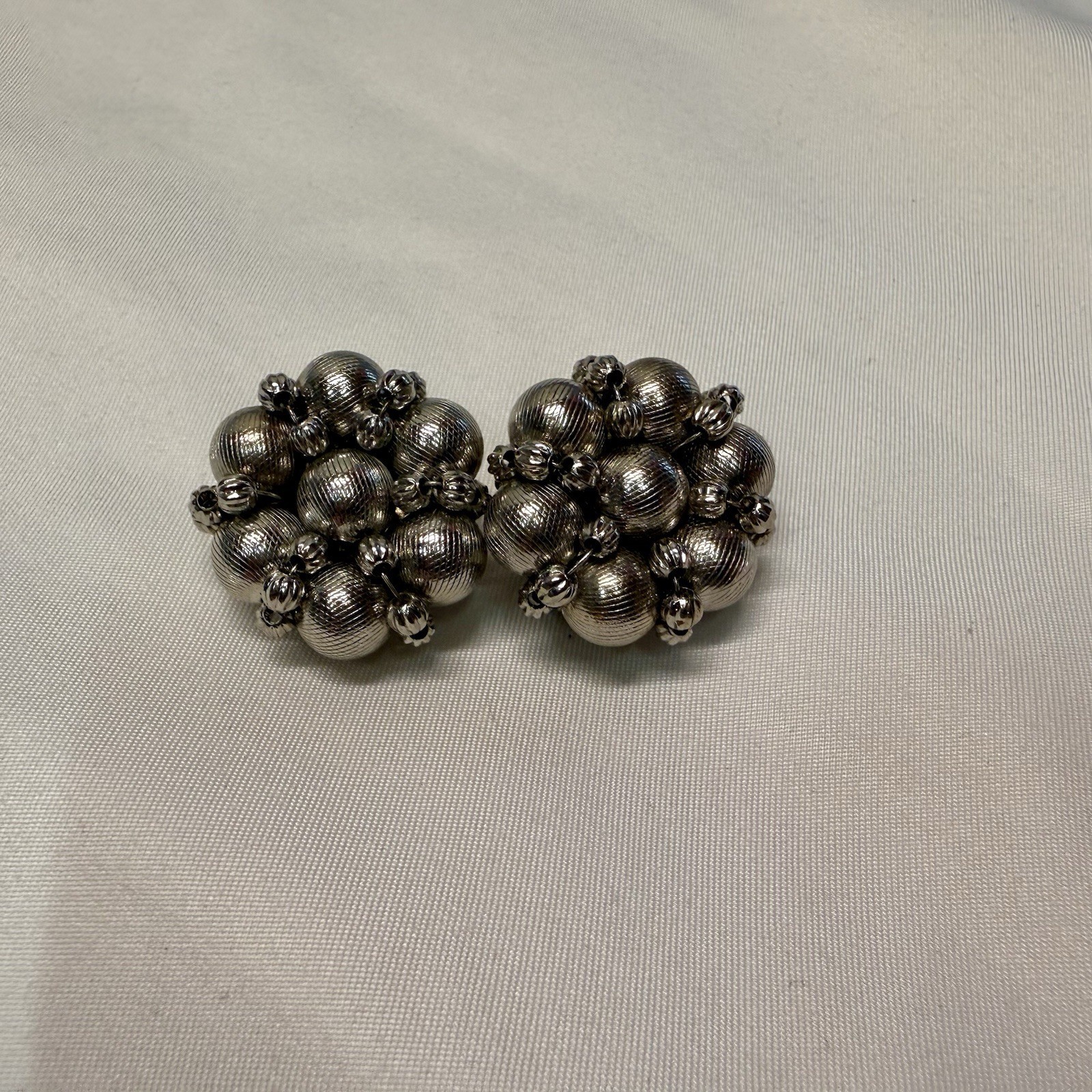 Vintage Silver Ball Cluster Clip Earrings and 48 similar items