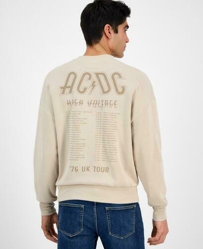 Tai Apparel Men's Ac/Dc Relaxed Fit Crewneck Graphic Sweatshirt Beige-Small