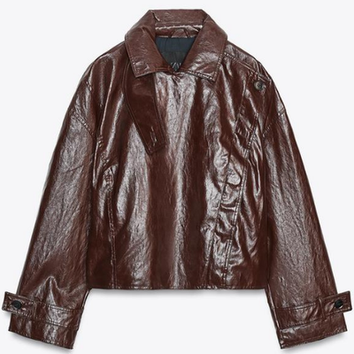 Zara Bnwt 2025. Dark Brown Shiny Jacket and 39 similar items