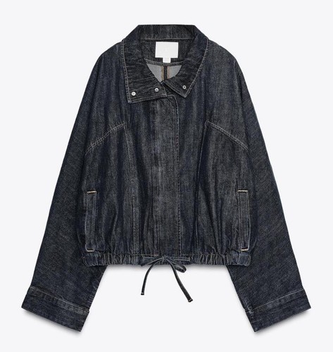ZARA BNWT 2025. DARK INDIGO DENIM JACKET BATWING SLEEVE. 8727/271/443