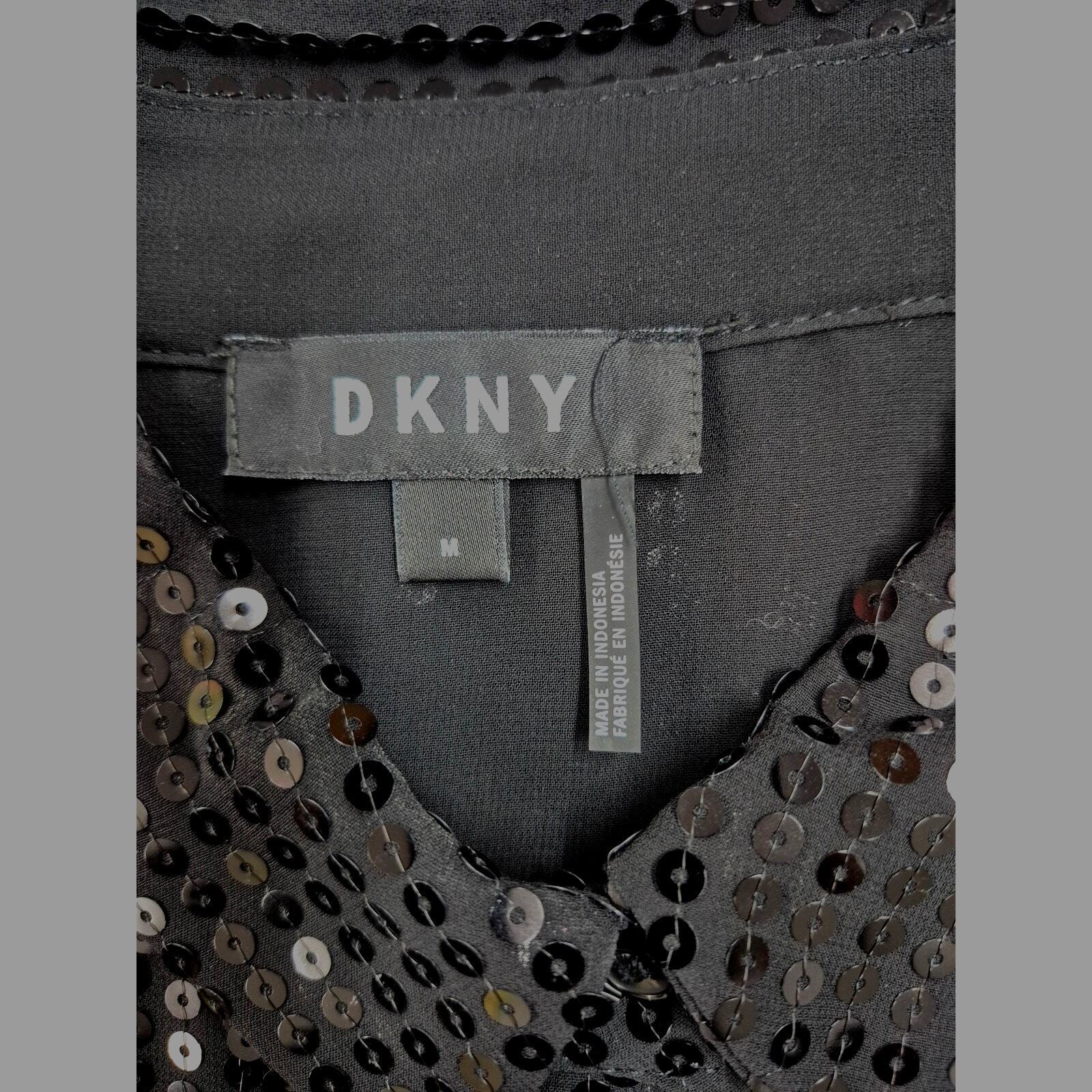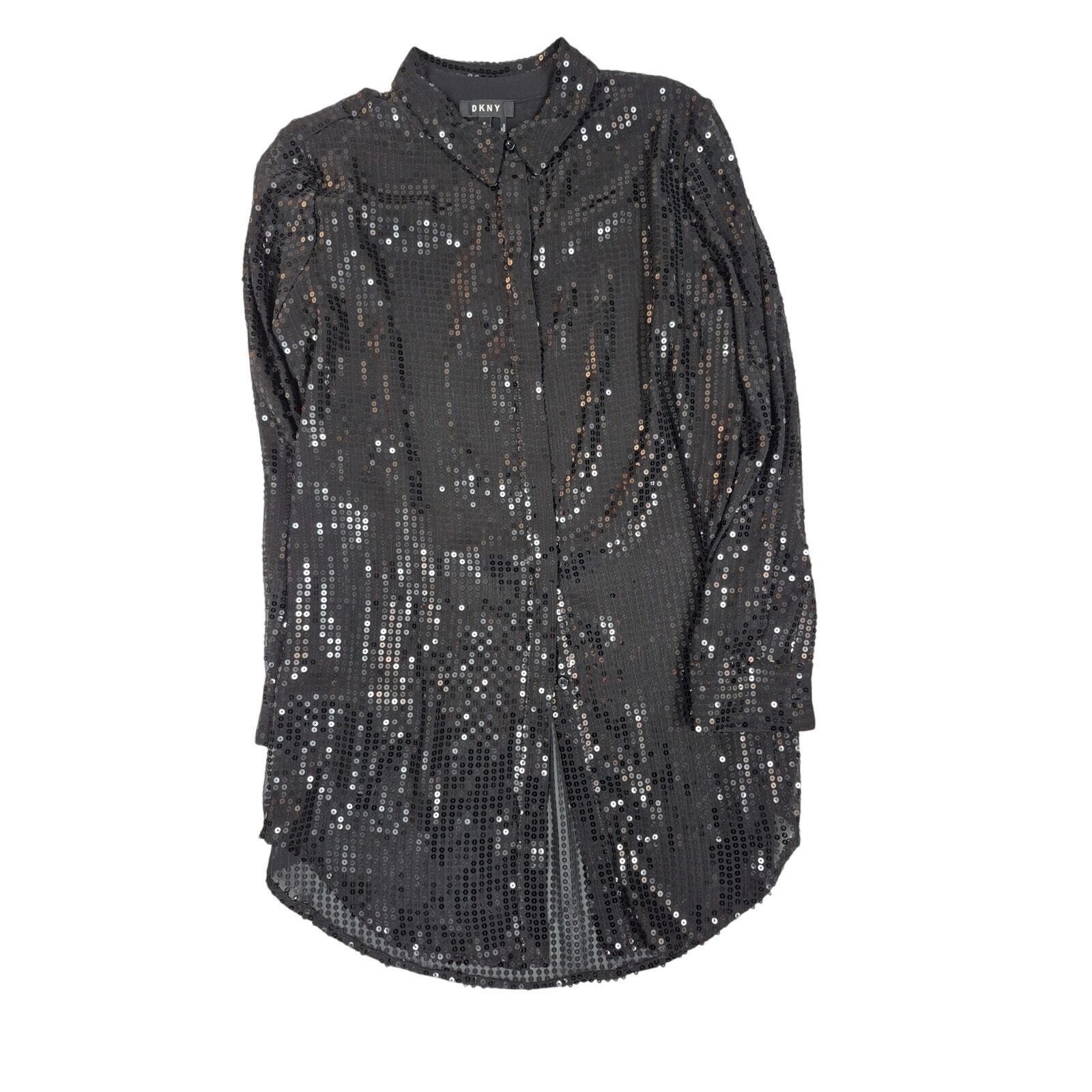 DKNY sheer black fully sequined shirt Blouse tunic Sz m/L Party Cocktail Formal