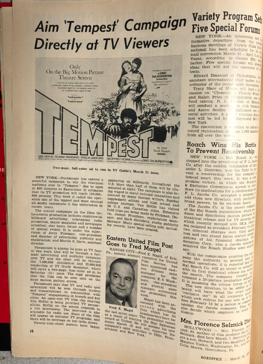 BOXOFFICE Magazine March 16, 1959 Anne and 50 similar items