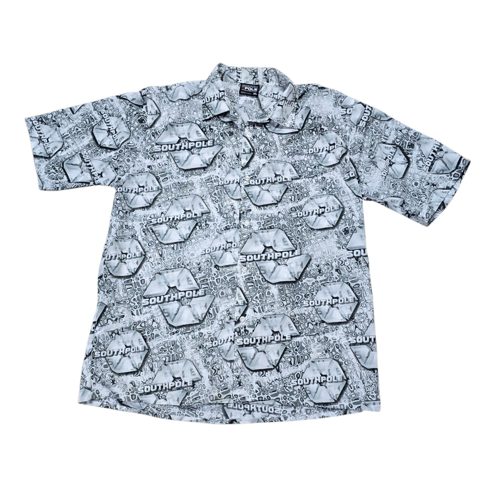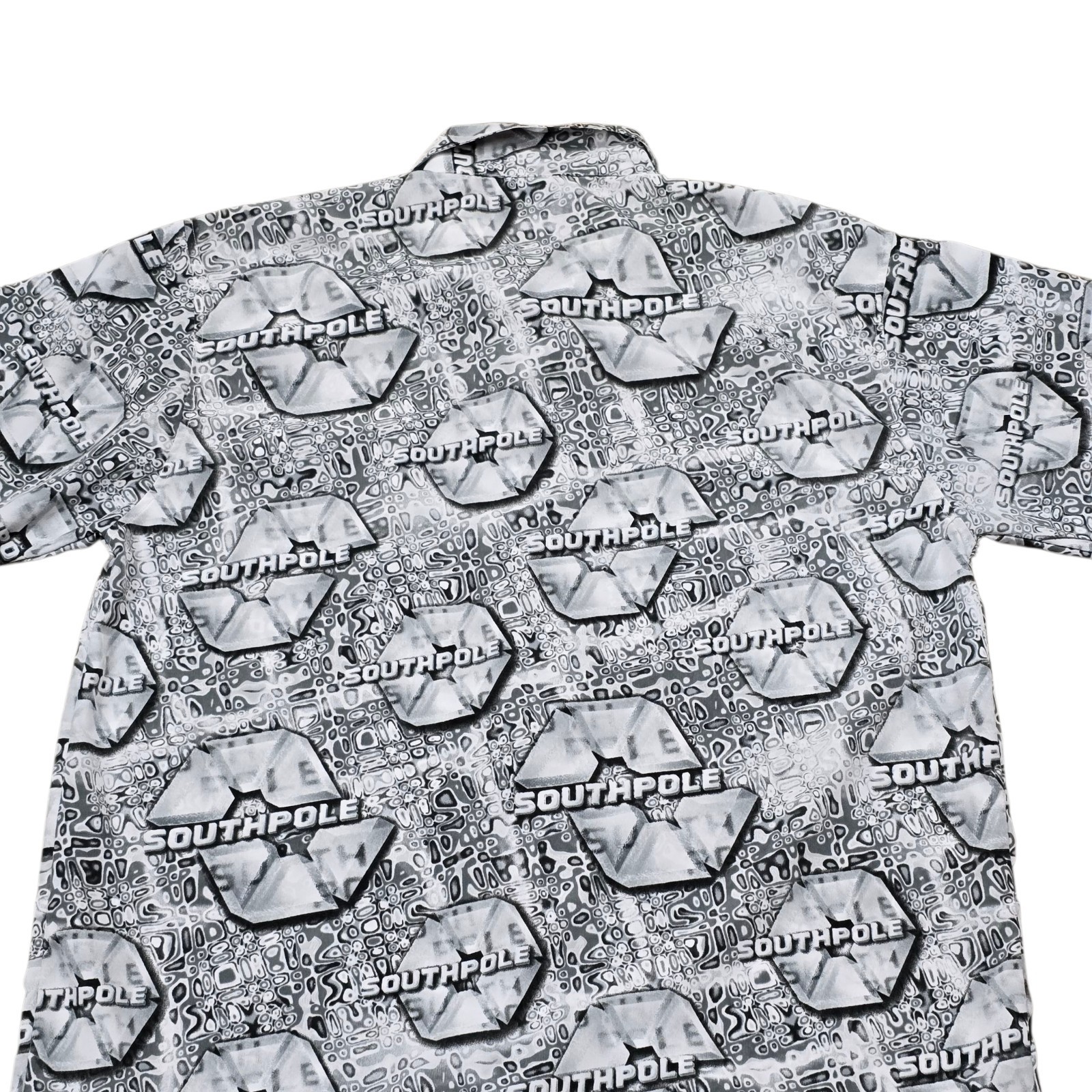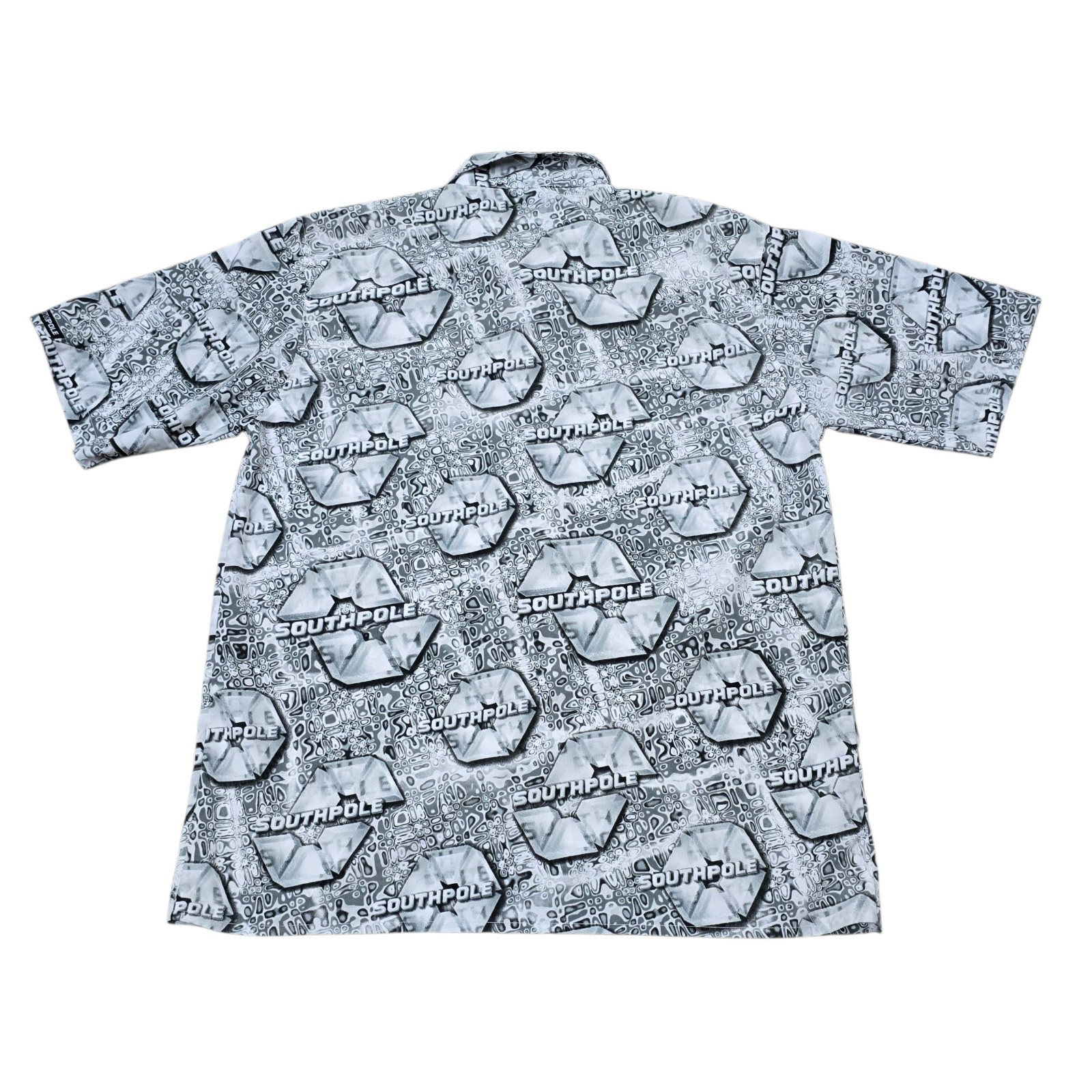 Step back into bold 2000s style with this vintage Southpole men?s shirt, featuring a standout all-over print, relaxed baggy fit, and retro loop collar. This button-up short sleeve shirt is a perfect example of early Y2K streetwear?ideal for fans of hip-hop fashion, skater vibes, or nostalgic 90s/2000s looks.