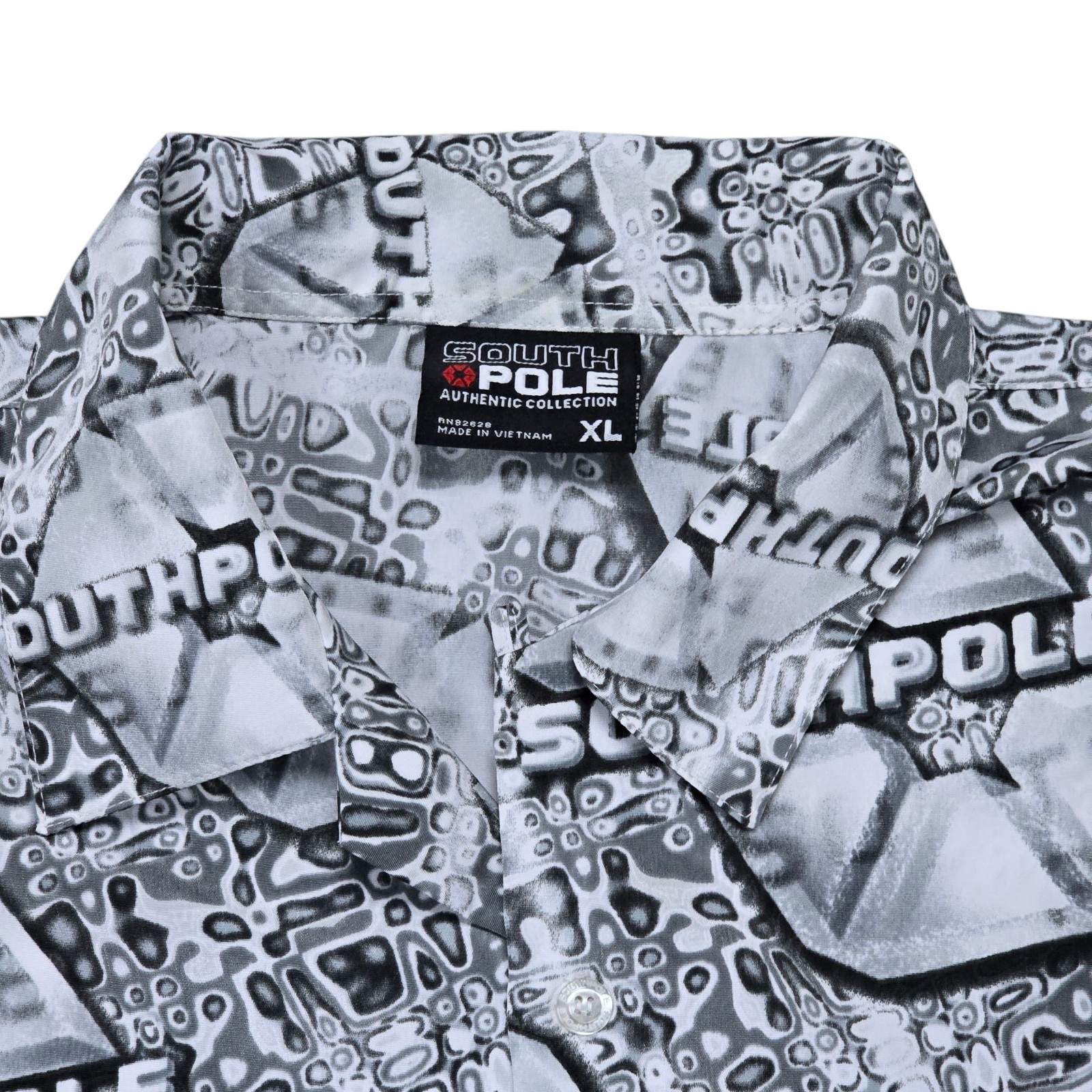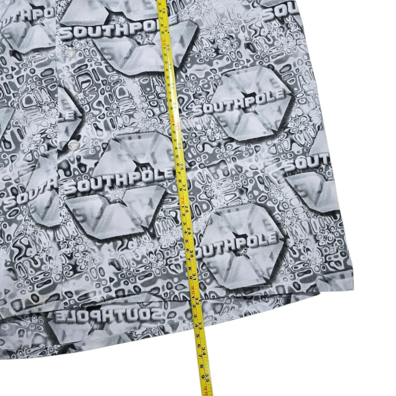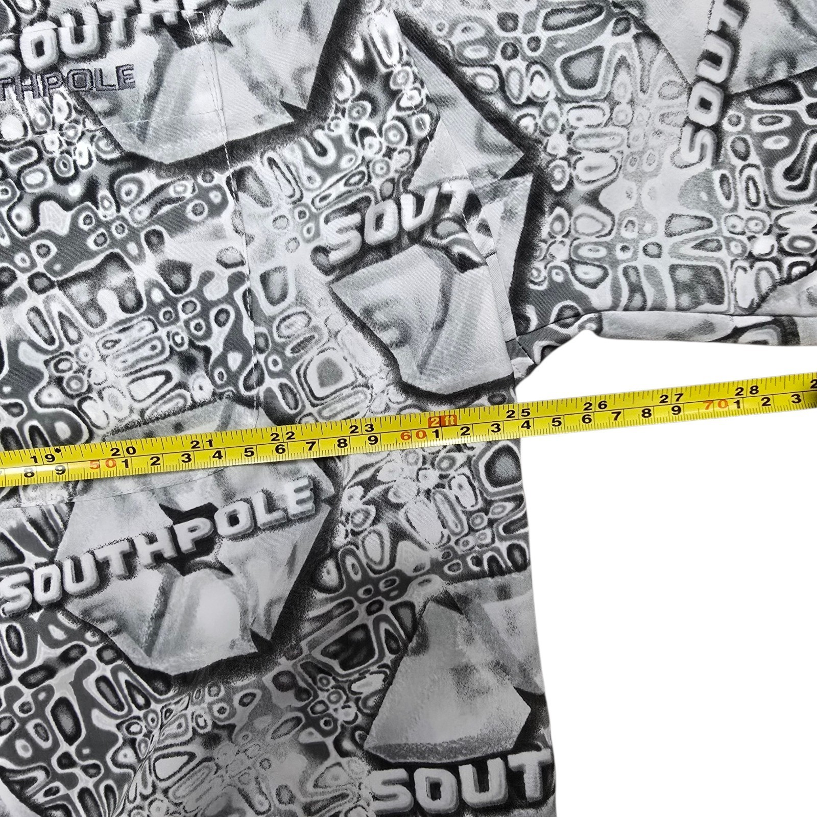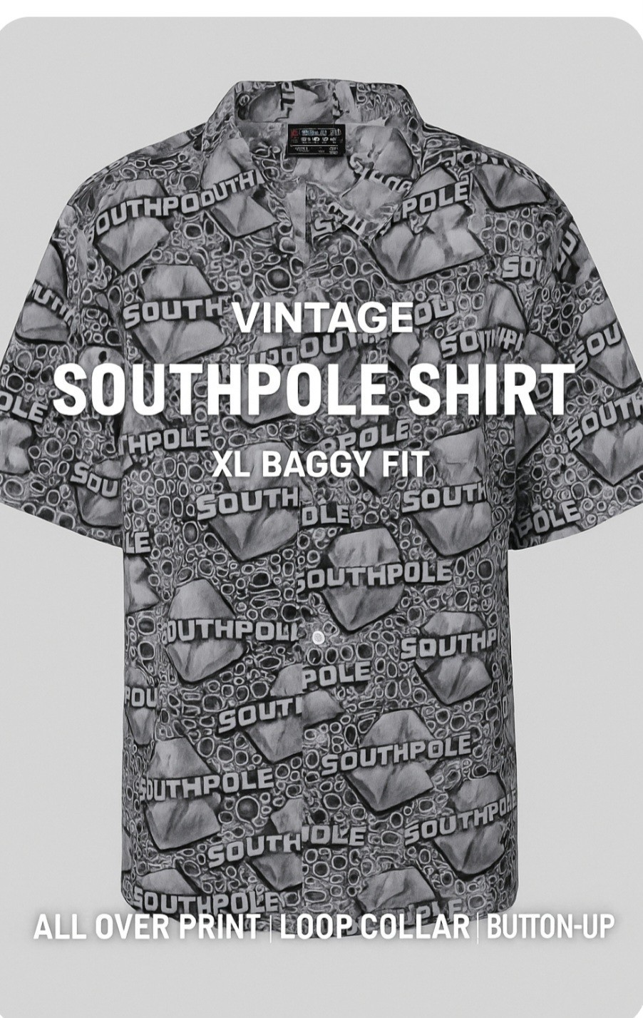 Step back into bold 2000s style with this vintage Southpole men?s shirt, featuring a standout all-over print, relaxed baggy fit, and retro loop collar. This button-up short sleeve shirt is a perfect example of early Y2K streetwear?ideal for fans of hip-hop fashion, skater vibes, or nostalgic 90s/2000s looks.