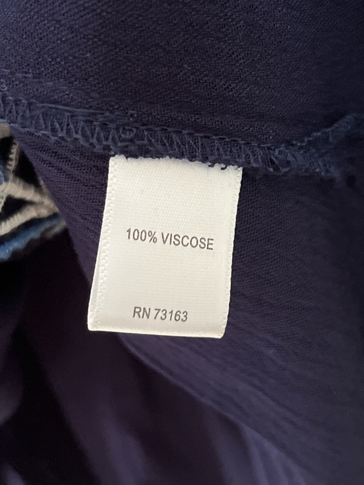 Beautiful navy blue long sleeve top by Cupio featuring intricate white and blue geometric embroidery on the front. The blouse has a lightweight, flowy drape and smocked neckline for a comfortable fit. Its airy viscose fabric and bohemian-inspired design make it perfect for everyday wear, travel, or pairing with jeans and skirts.