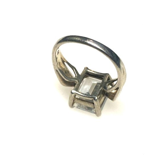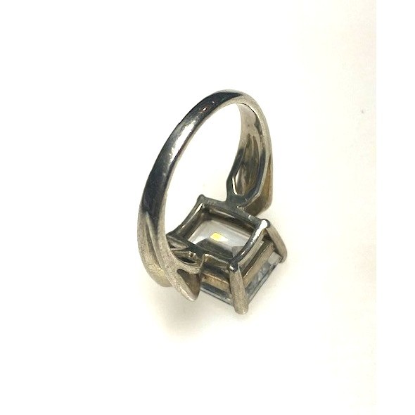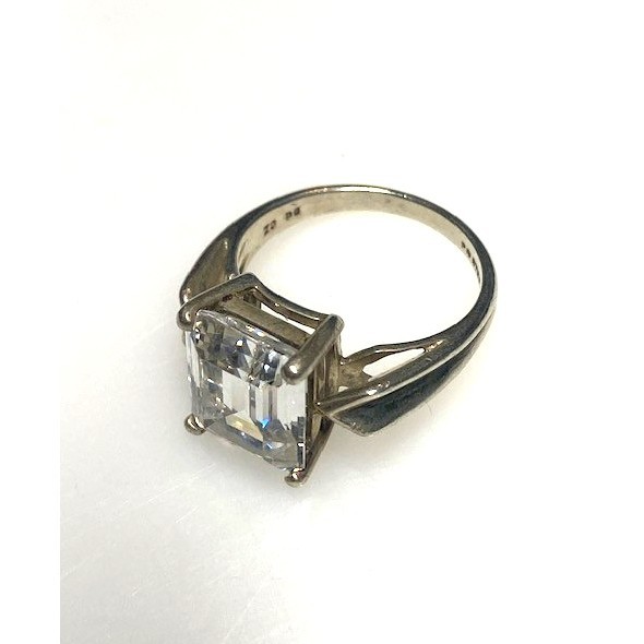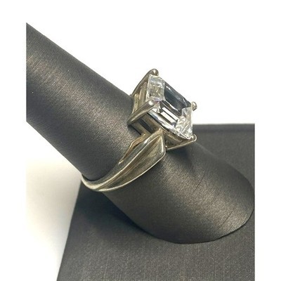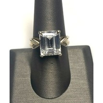 925 STERLING SILVER AND 8 CT EMERALD CUT COLORLESS GEM ENGAGEMENT RING SIZE 8 SKY