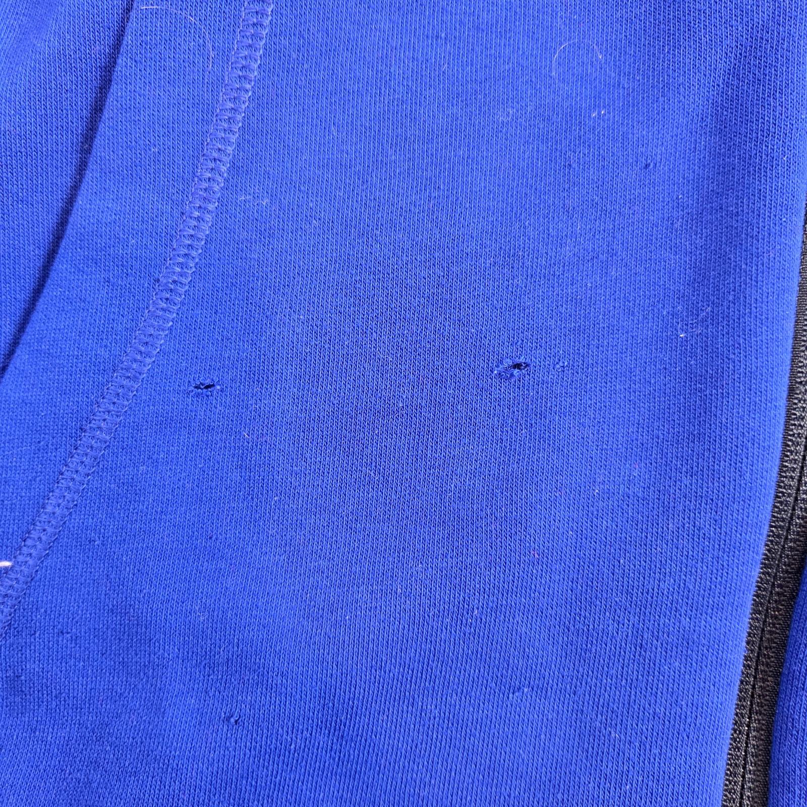 This Polo Ralph Lauren Performance full-zip hoodie is designed with a lightweight polyester-cotton blend for comfort and casual wear. Features include an attached hood, front pockets, and the Polo Ralph Lauren Performance label inside. Please note: there are several small holes in the front pocket areas, shown clearly in photos.