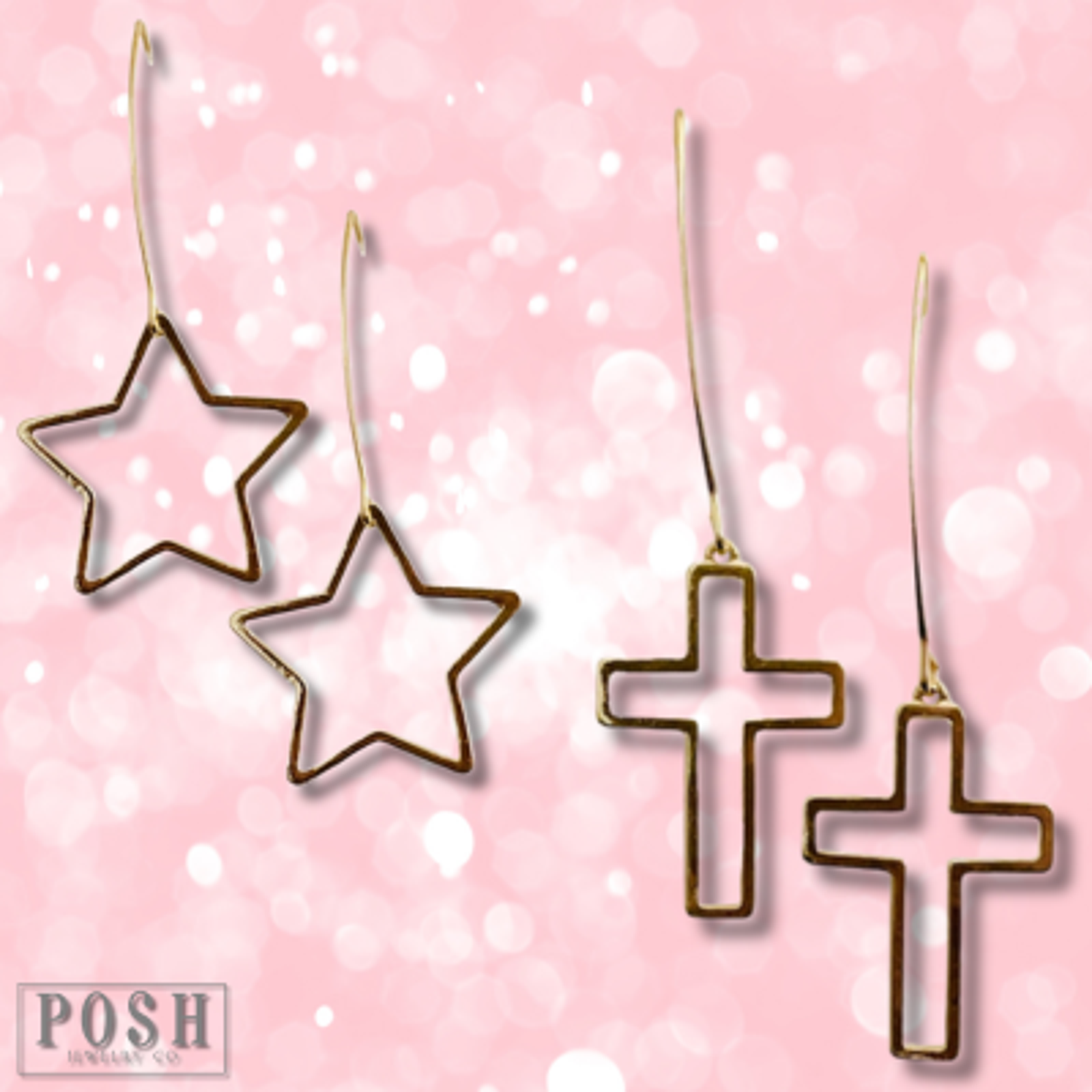 Long Drop Dangle Charm Earring on Hook Open Cross