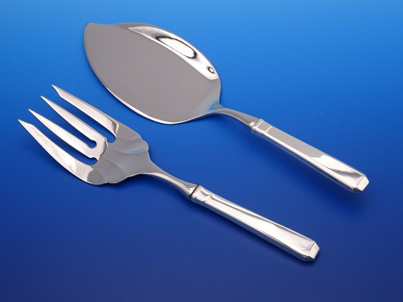 Gorgeous sterling silver hollow handle with stainless implement Salmon Serving Set 2-piece custom made in the pattern Craftsman By Towle. This set includes two versatile serving utensils: