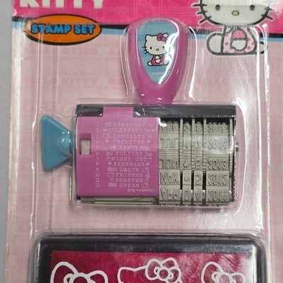 Keywords: Hello Kitty, Stamp Set, Date Stamp, Phrase Stamp, Ink Pad, Sanrio, Stationery, New in Package, NIP, Crafts, Scrapbooking, DIY, Kawaii, Collectable, Vintage