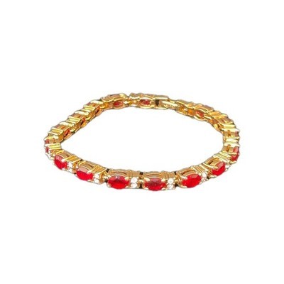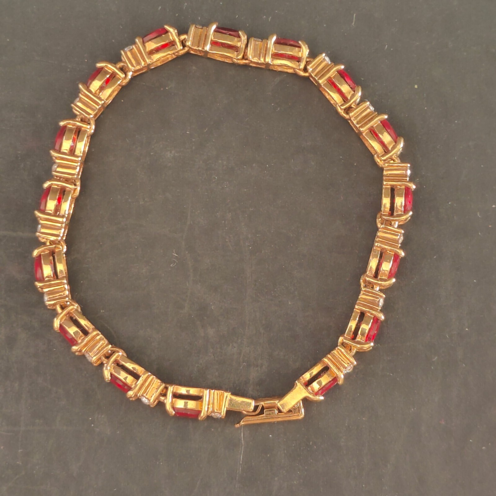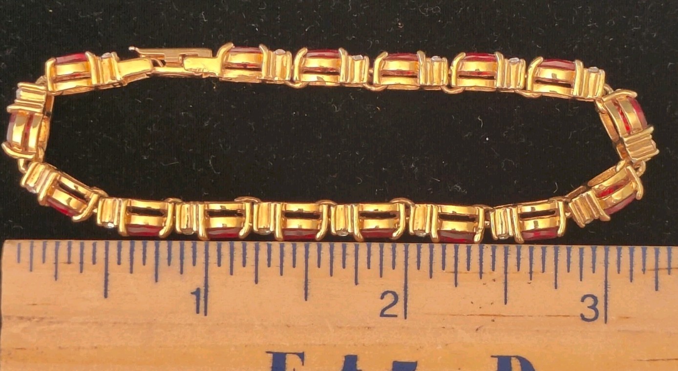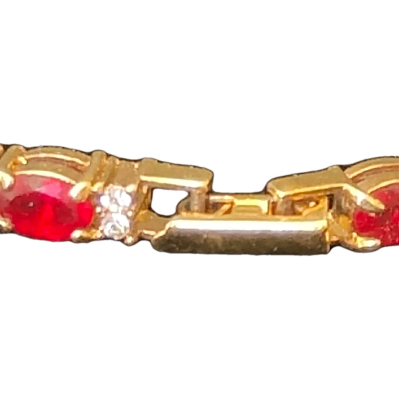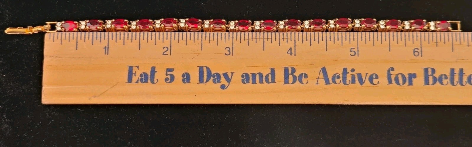 Avon 6.5” Red Ruby & Clear Colored Rhinestone Gold Tone Tennis Bracelet Vintage