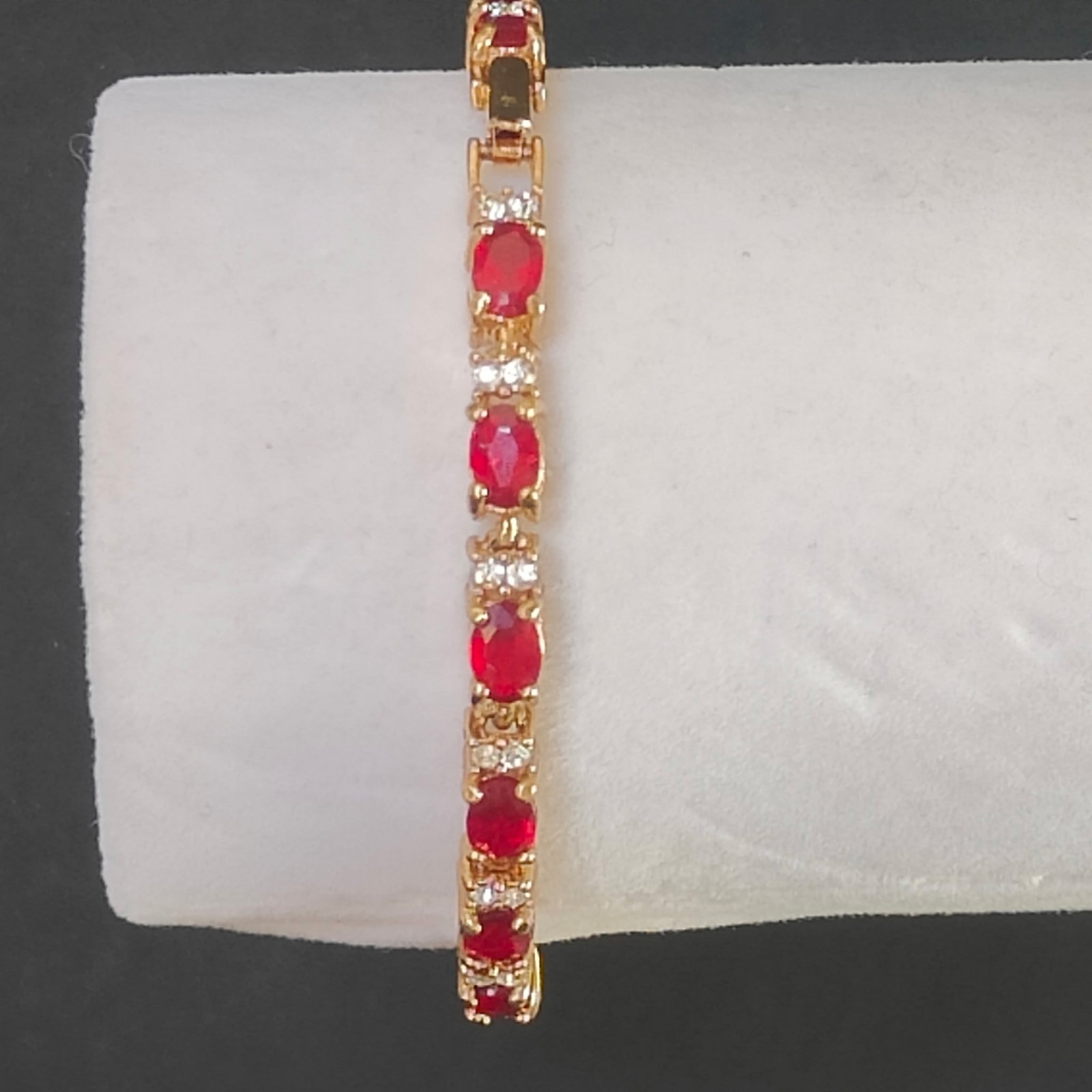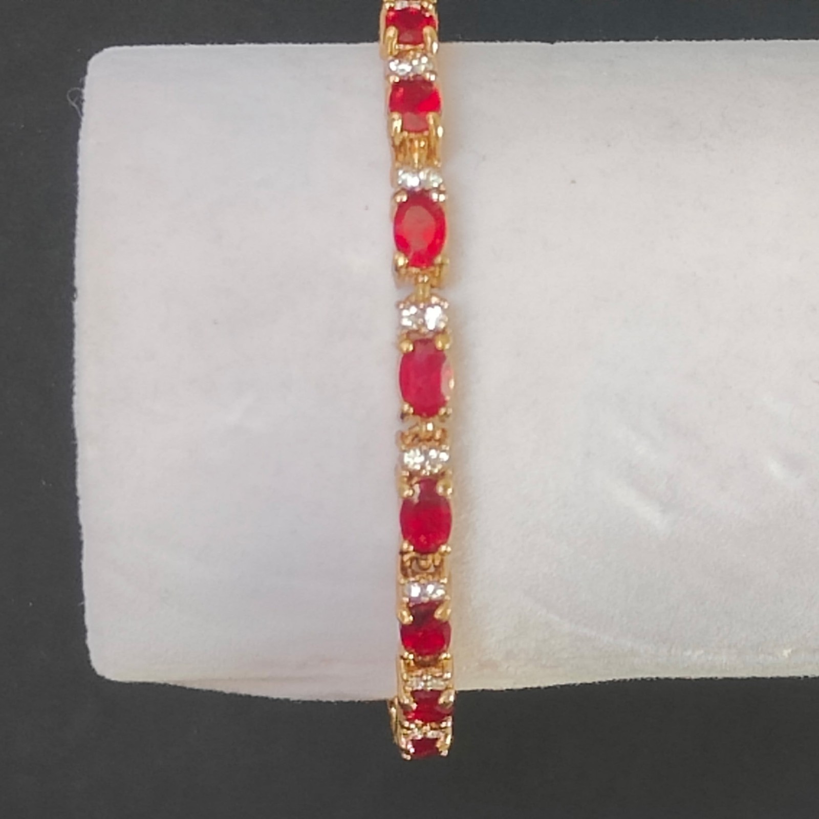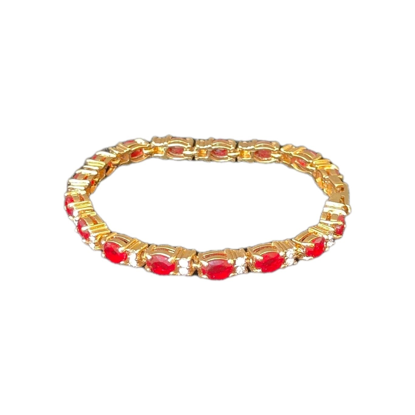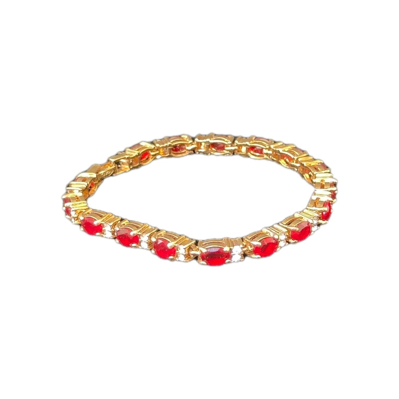 Avon 6.5” Red Ruby & Clear Colored Rhinestone Gold Tone Tennis Bracelet Vintage