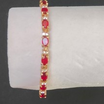 Avon 6.5” Red Ruby & Clear Colored Rhinestone Gold Tone Tennis Bracelet Vintage added to cart.