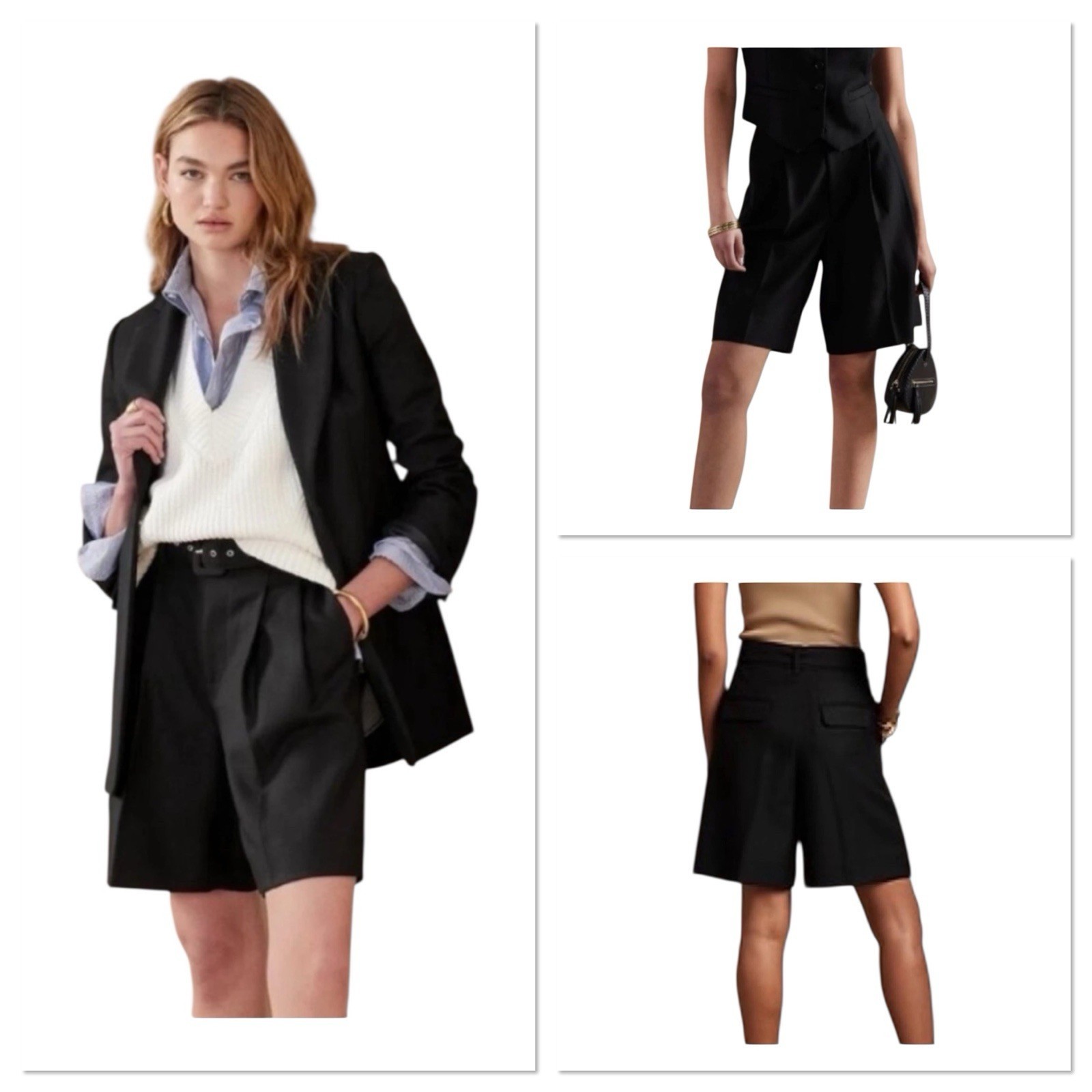 Banana Republic Lido Italian Wool Bermuda Short 2 Black Pleated #580404-01 New