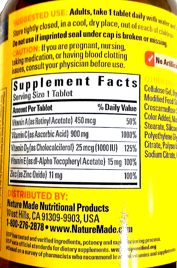 Vitamin D3 (25 mcg/1000 iu) Zinc (11 mg)