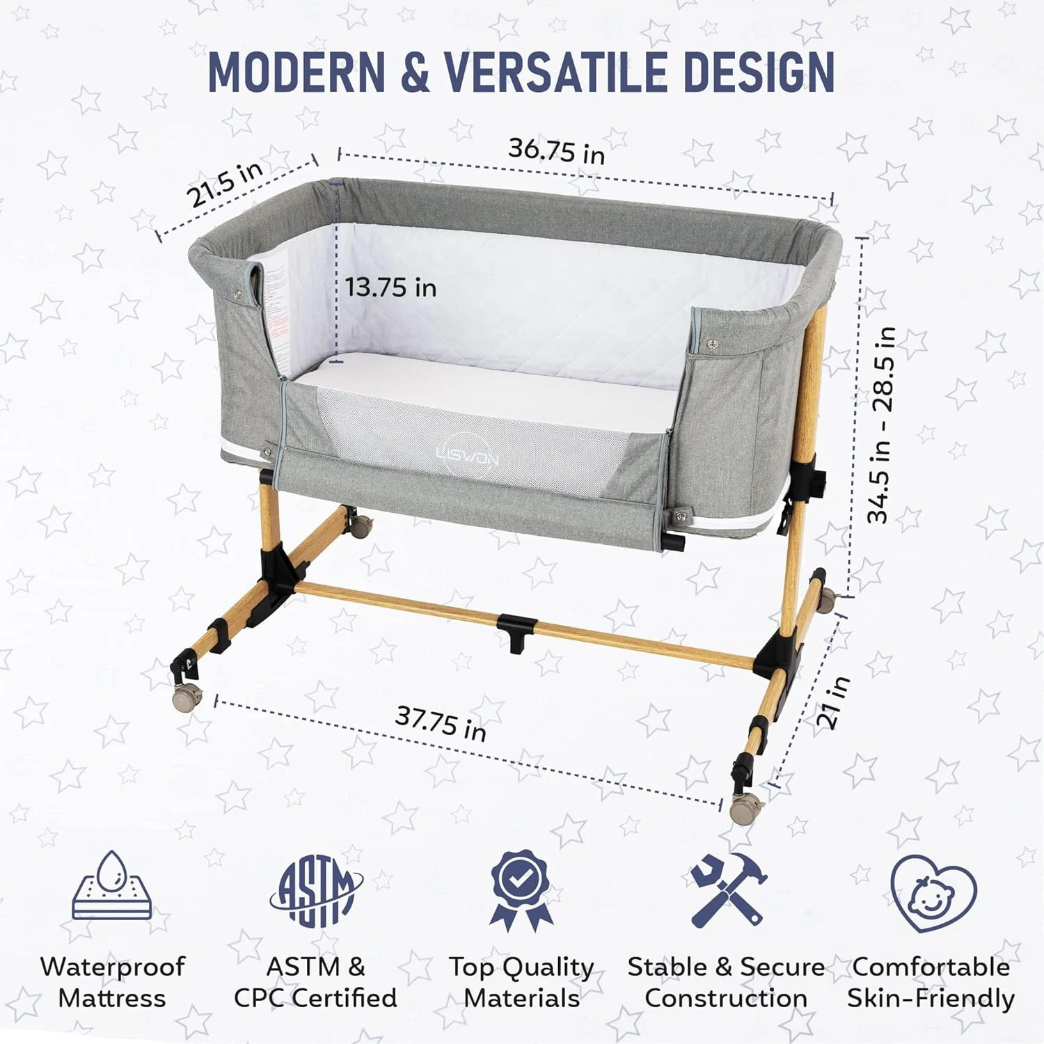 Baby Bassinet Bedside Sleeper Portable Baby Crib Bassinet Adjustable
