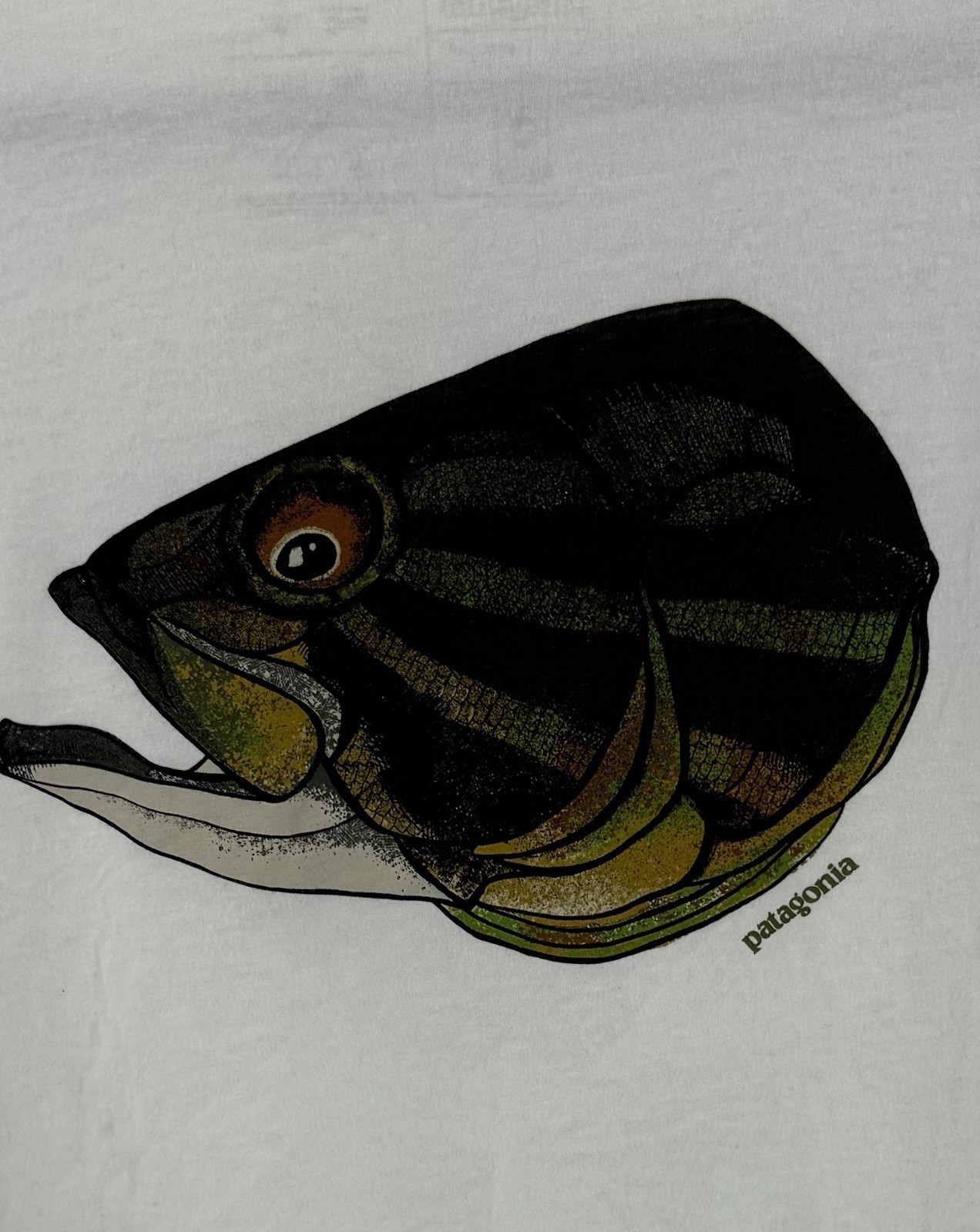Patagonia Mens T Shirt Sz XL White Fish Noggins Short Sleeve Tee Organic Cotton