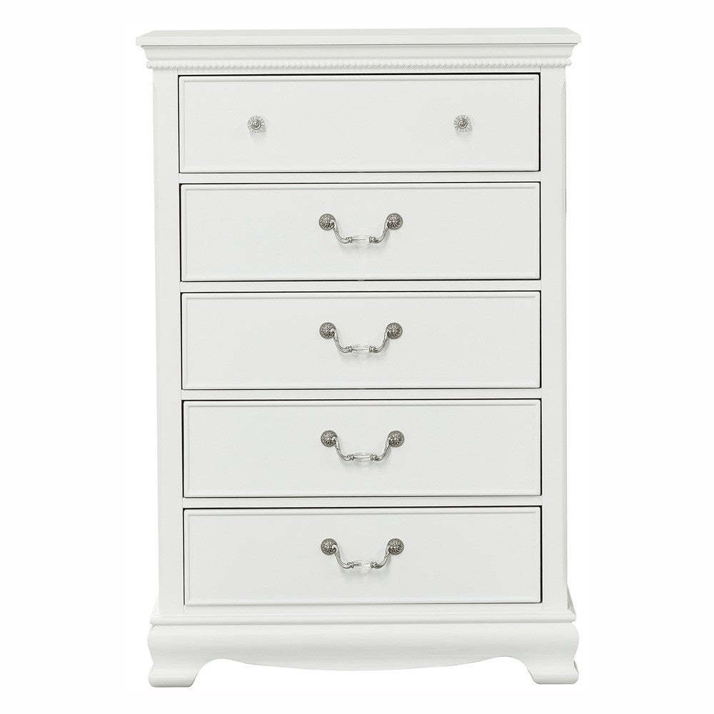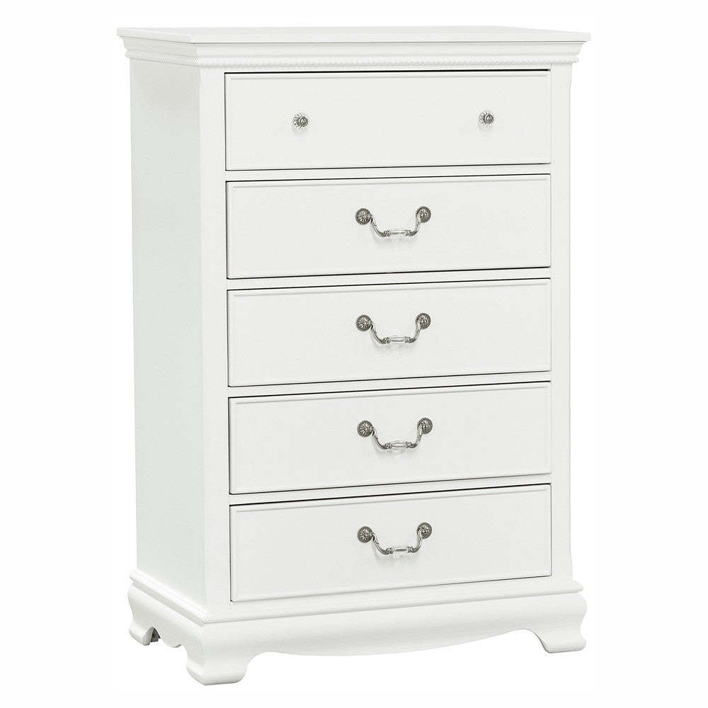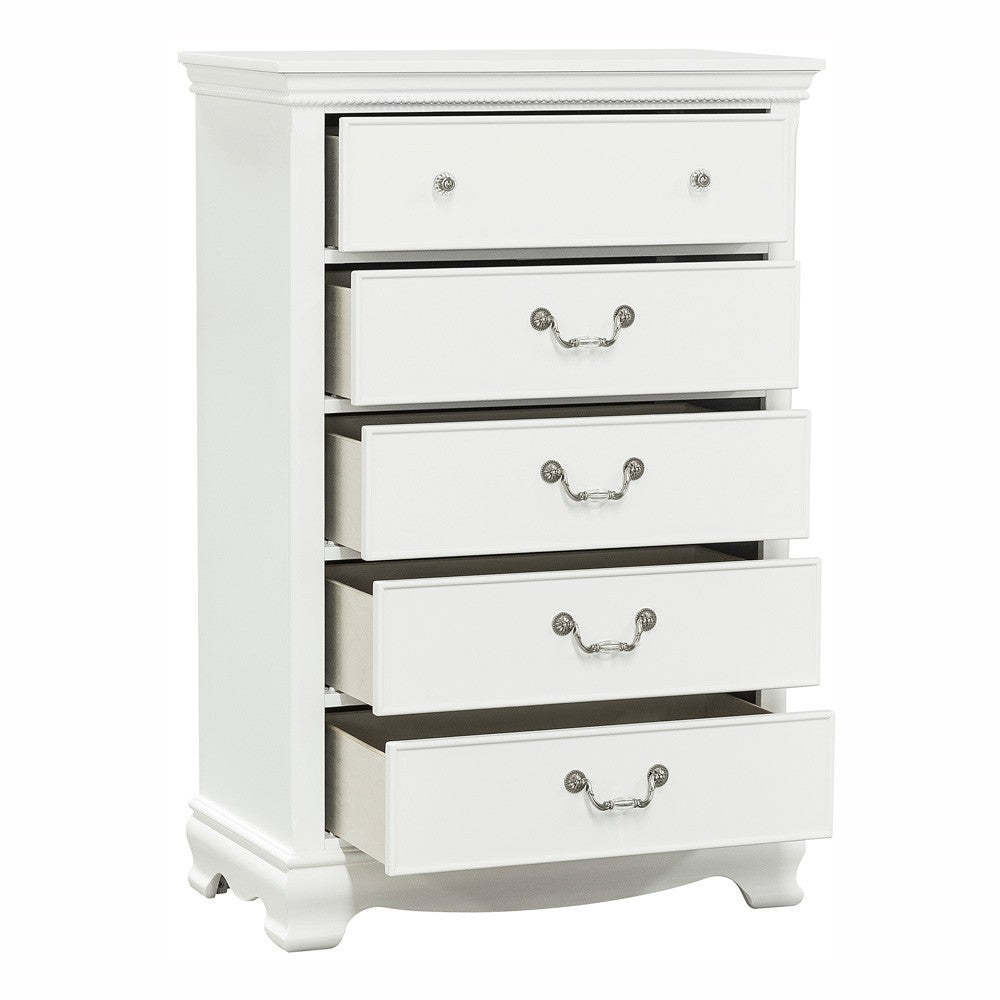 Classic White Wooden 5-Drawer Chest: Traditional Bedroom