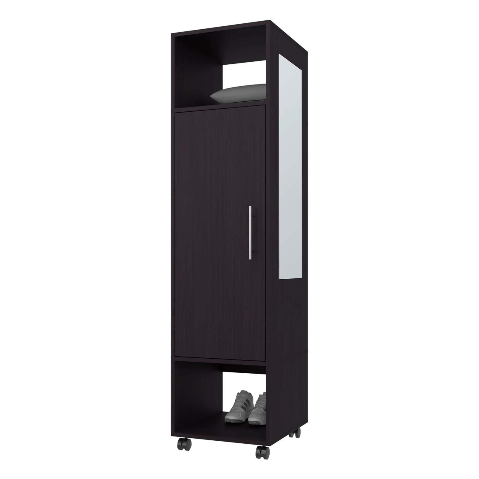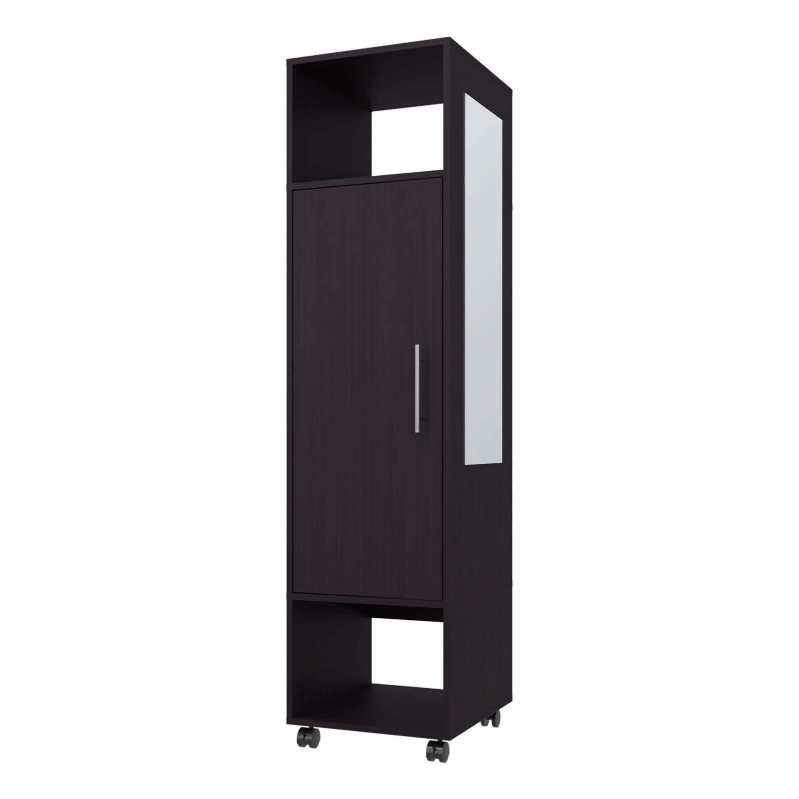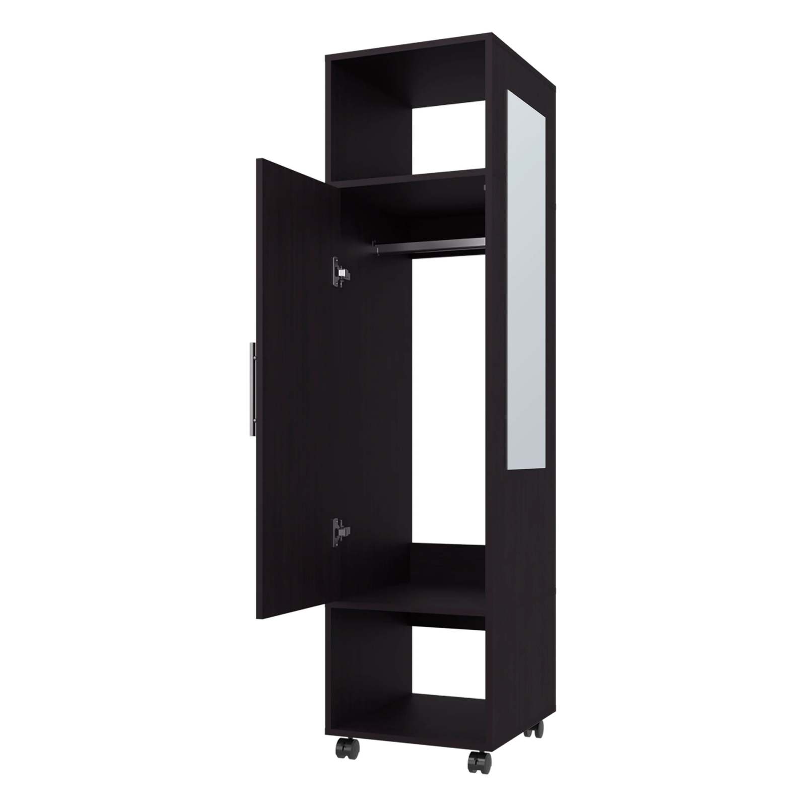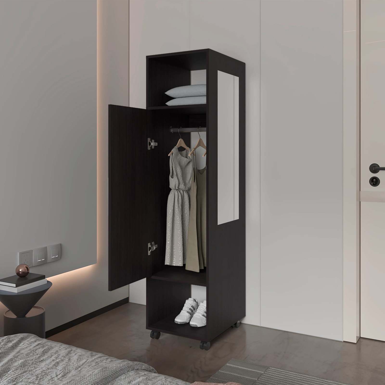 Black 1-Door Wardrobe with Mirror and Open Storage: Organize Your Space