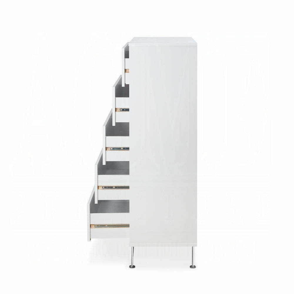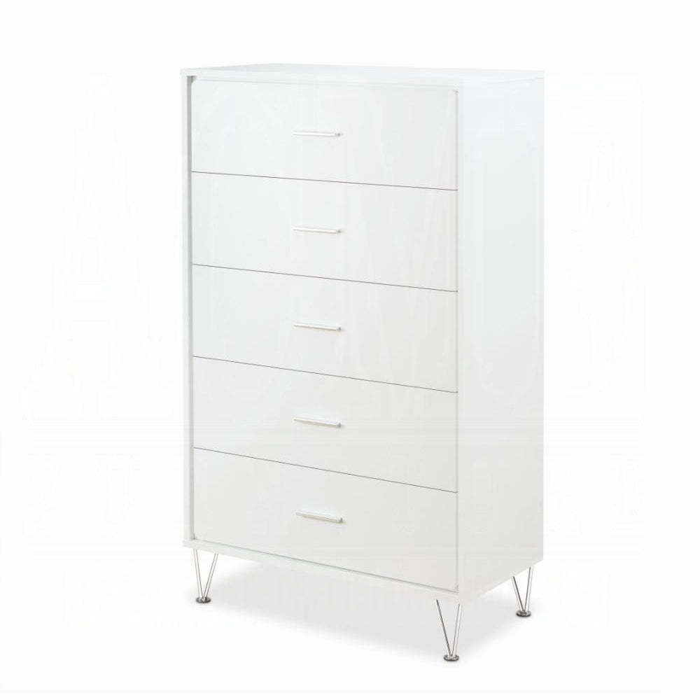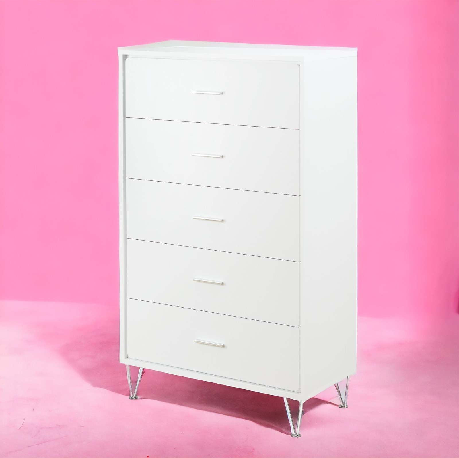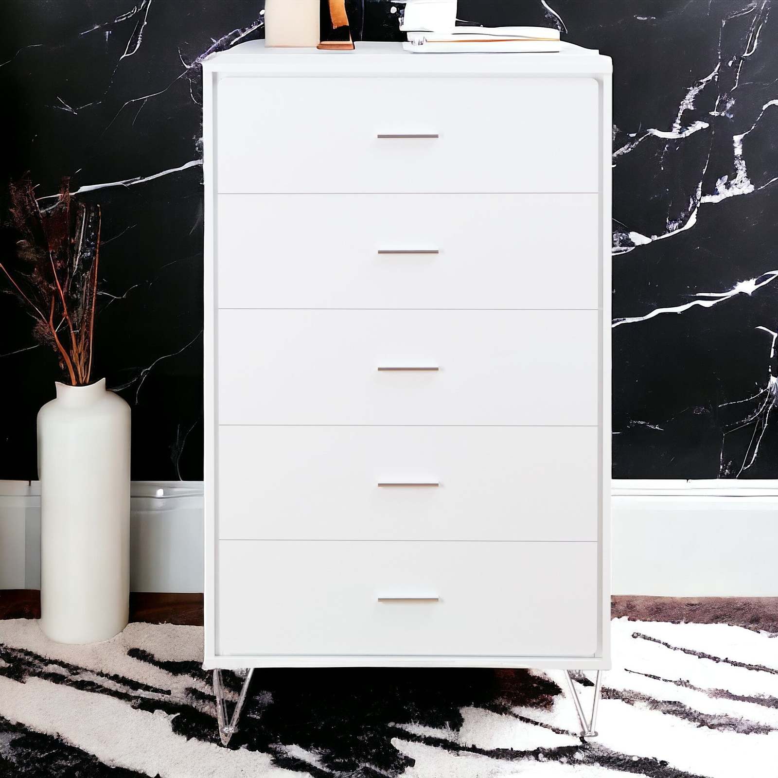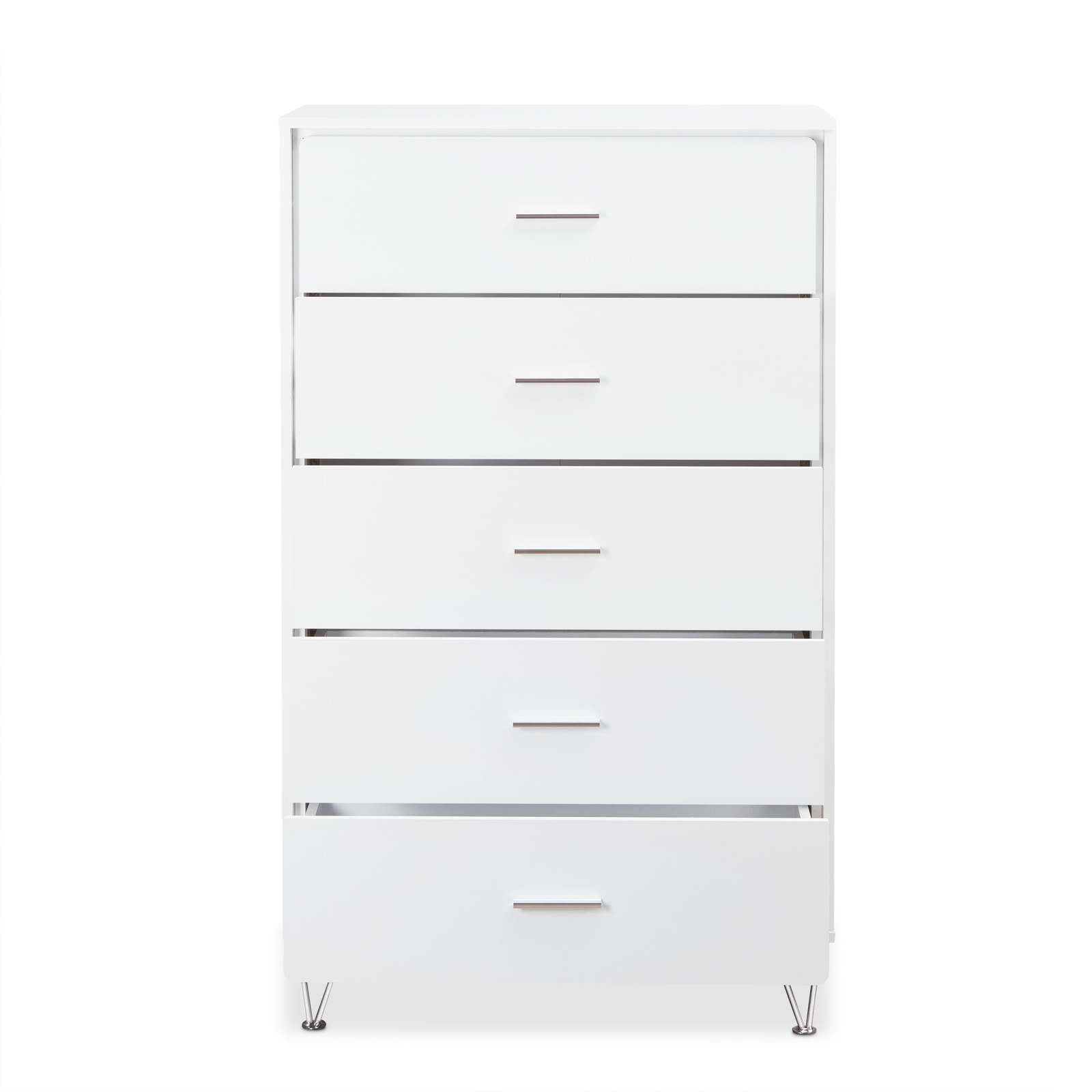 Modern White 5-Drawer Chest with Single Handles | Elegant Bedroom Storage
