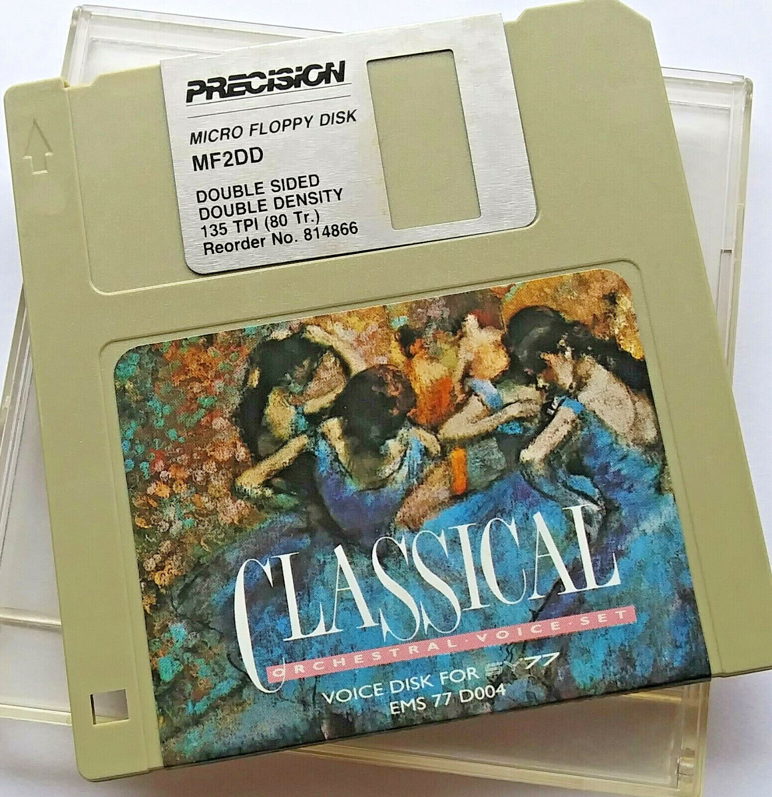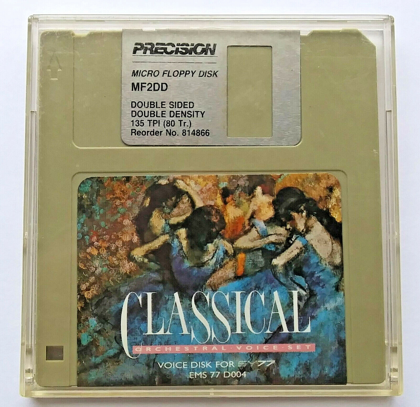 This is an original Yamaha floppy disk diskette for the SY77 synthesizer keyboard. Cosmetic condition of the disk is very good (and it's now over 20 years old), and it works great in your SY77's floppy disk drive.