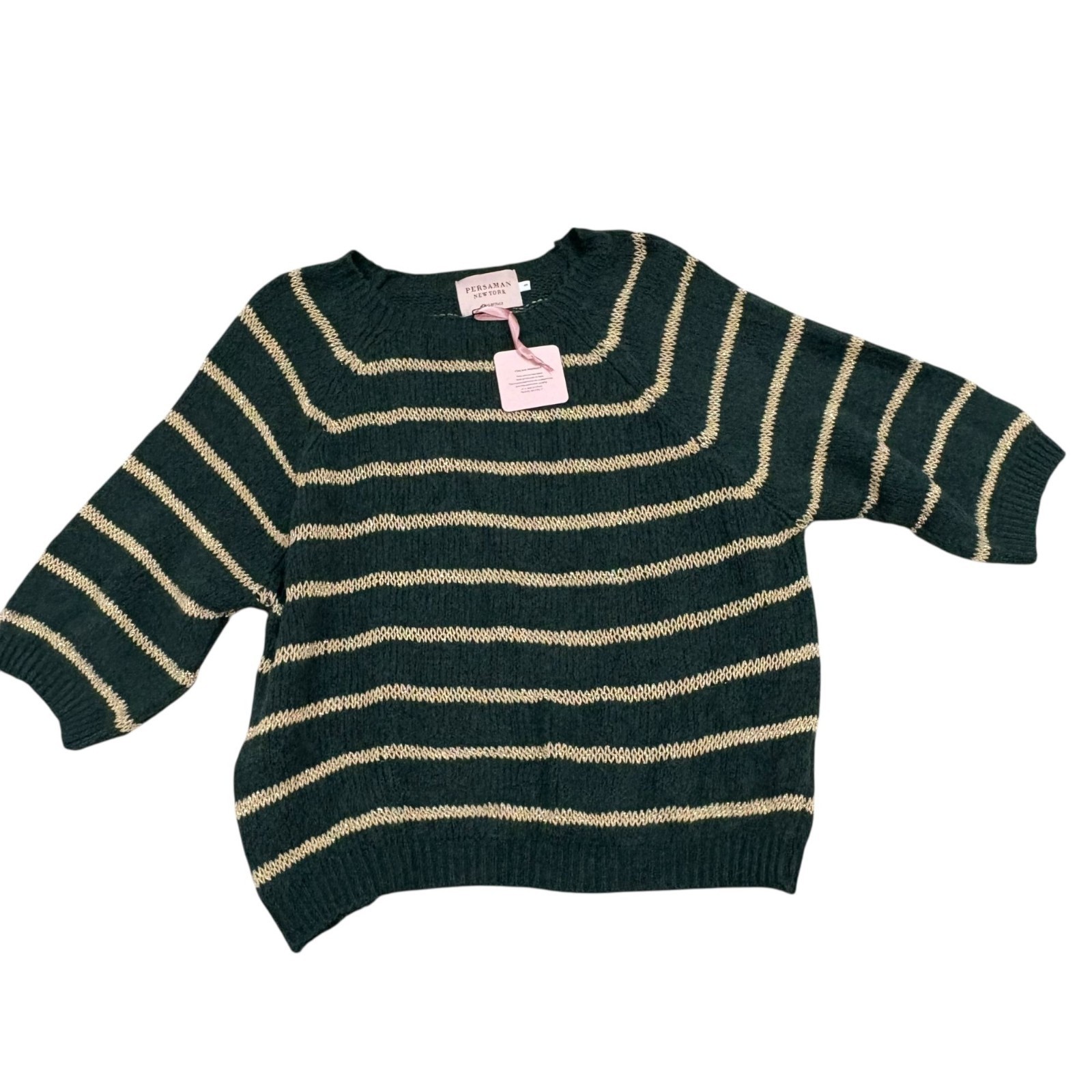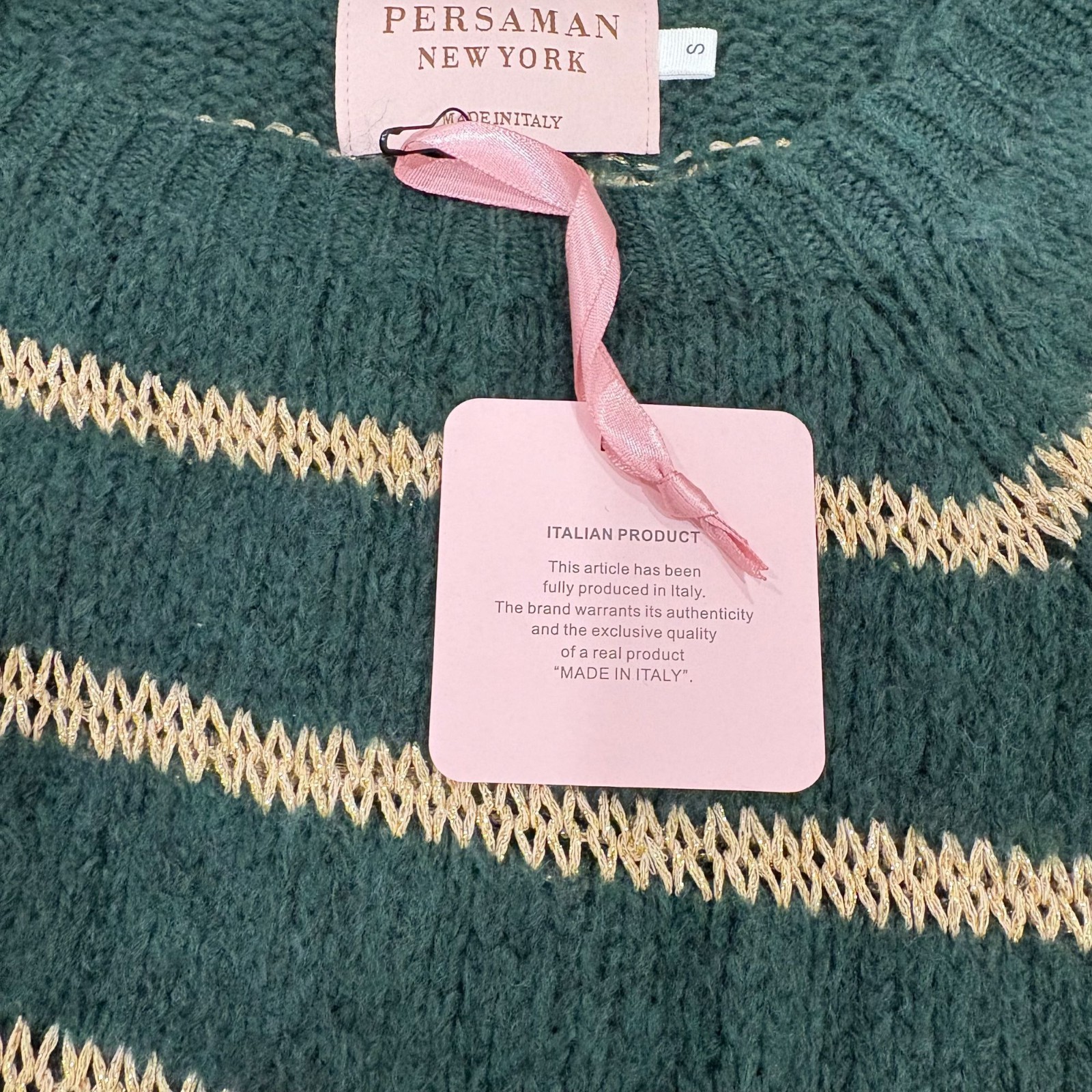 Persaman NY Italian Striped Sweater Green & Gold Womens S NWT