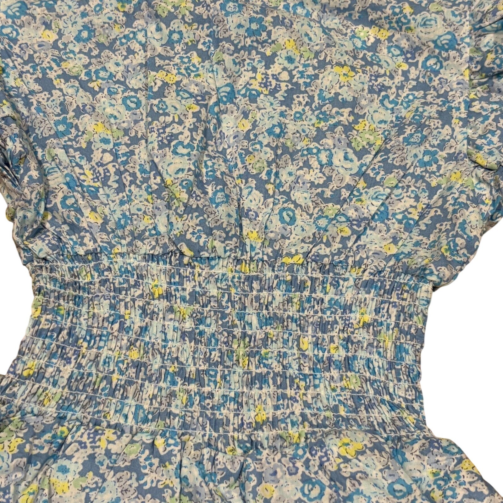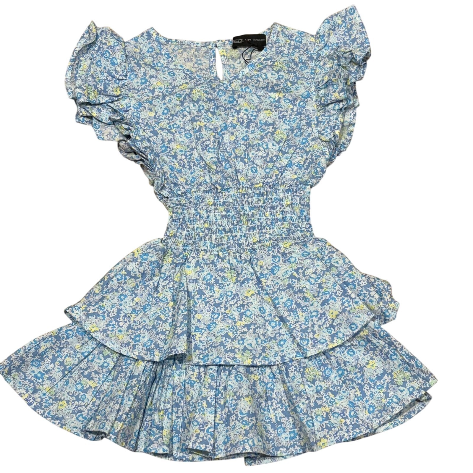 Charming ditsy floral dress designed for toddlers aged 1-2 years. Features ruffled sleeves and a tiered skirt, crafted to bring comfort and style.