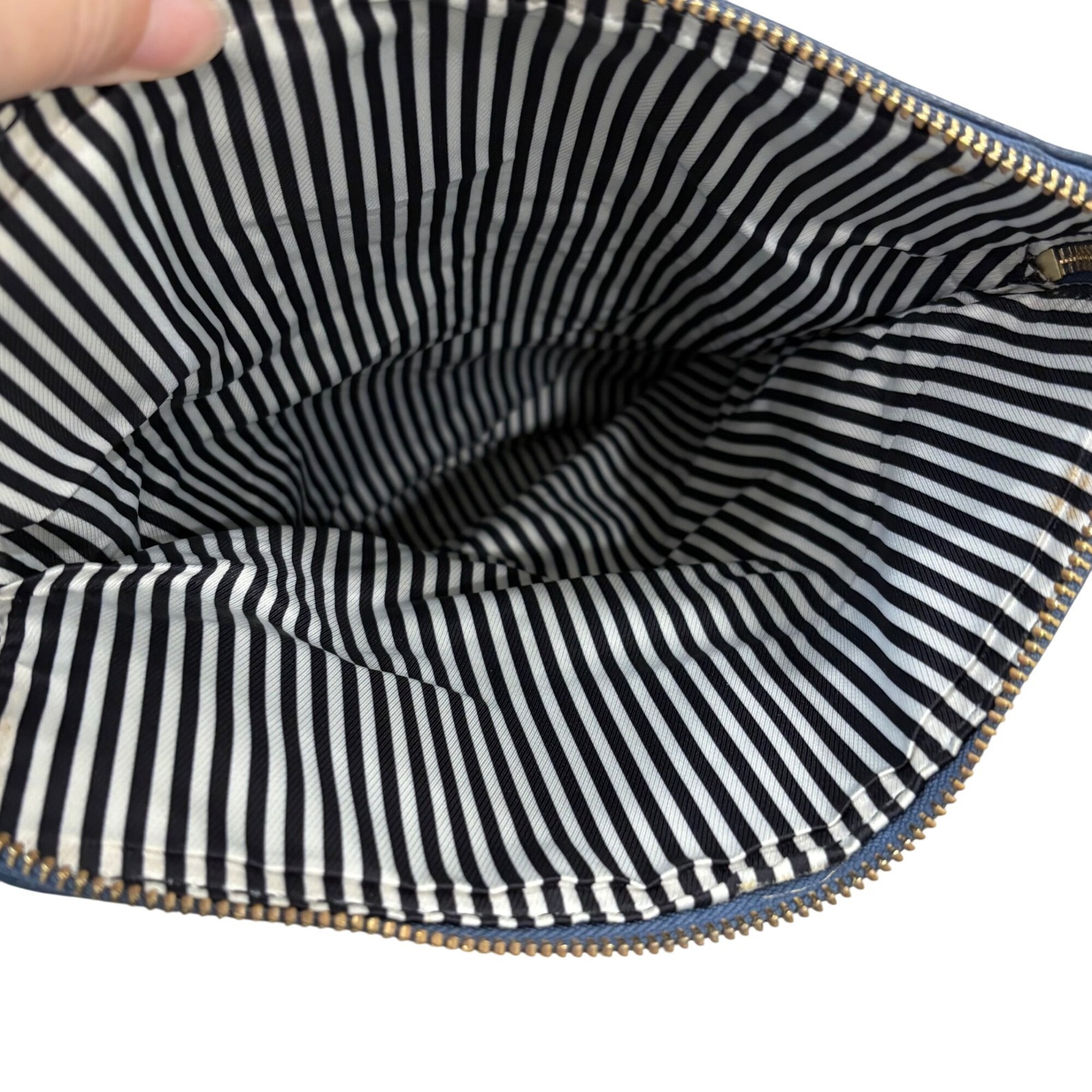 Unveil the secret of timeless fashion with this Kate Spade shoulder bag. Crafted from sumptuous blue leather, this bag boasts a chic design with a striped interior. Its spacious compartments ensure all your essentials have a home. Whether you're navigating city streets or attending an elegant soiree, it's your trusted companion.