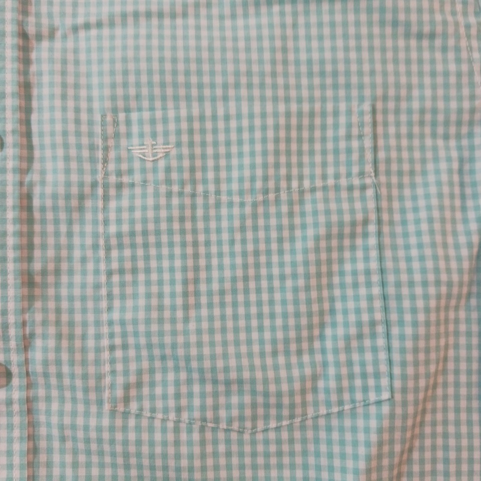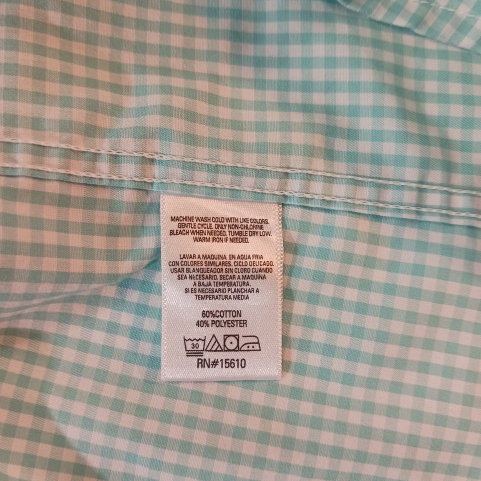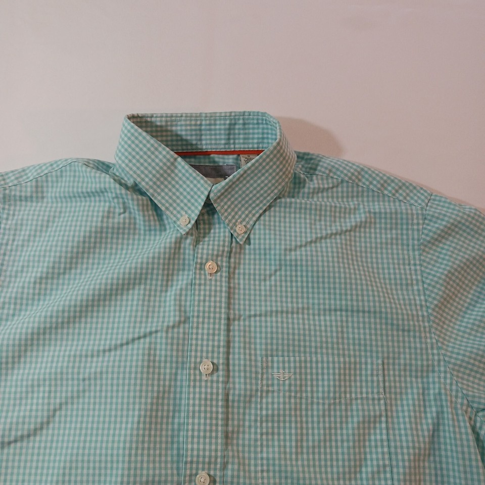 Elevate your casual style with this Dockers RN#15610 men's shirt in size M. The white and green check pattern adds a pop of color to your wardrobe, while the collared neckline and button-down closure create a classic look. Made from a blend of polyester and cotton, this shirt is perfect for all seasons and occasions.