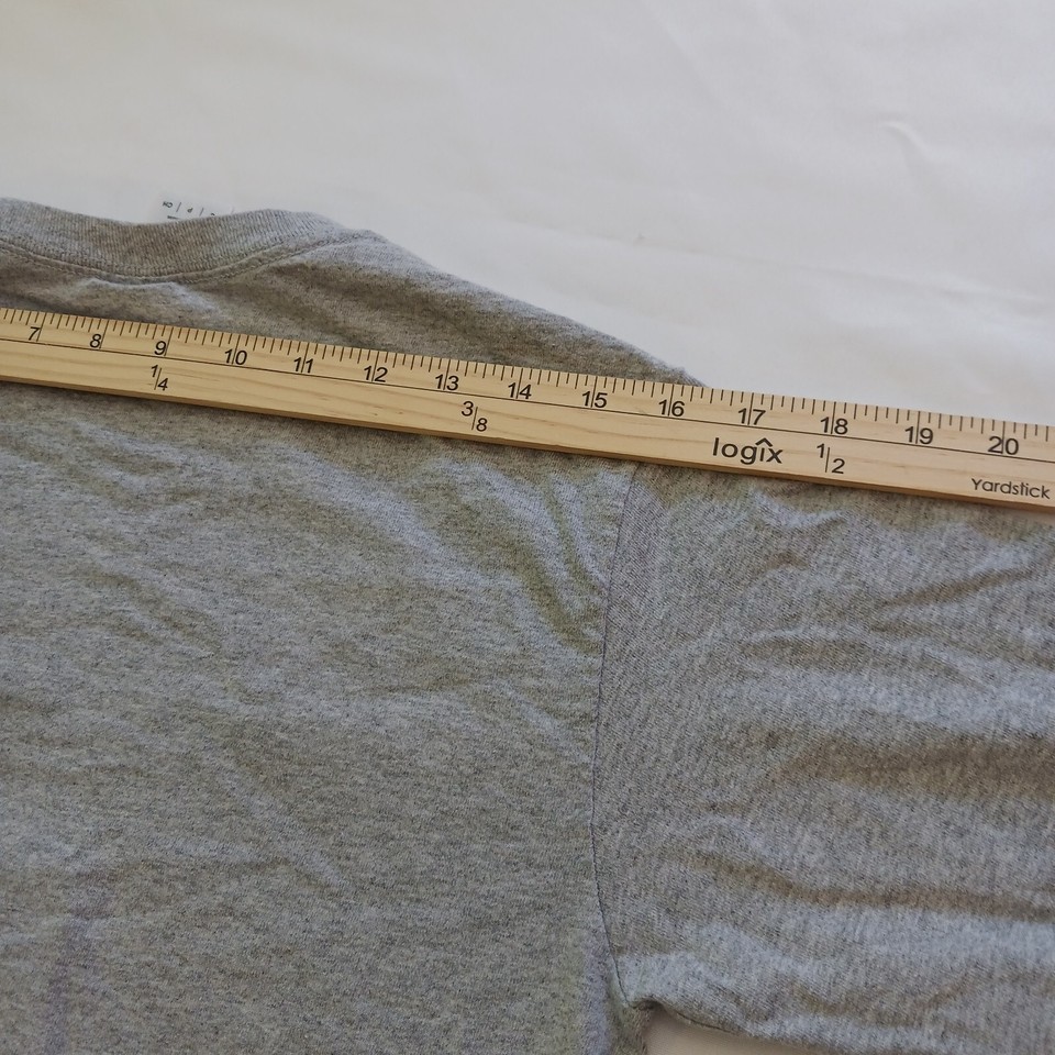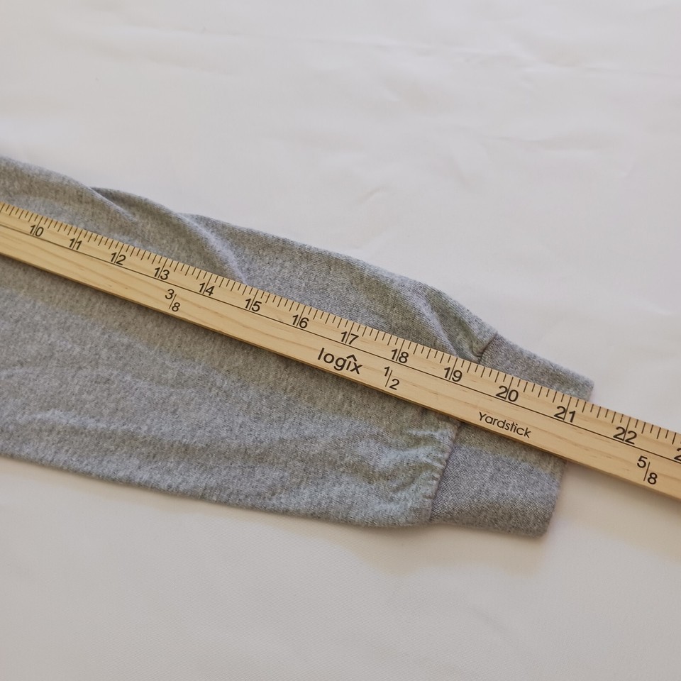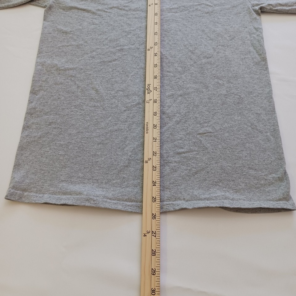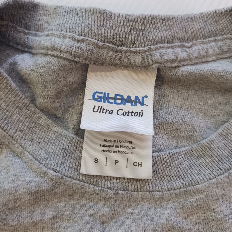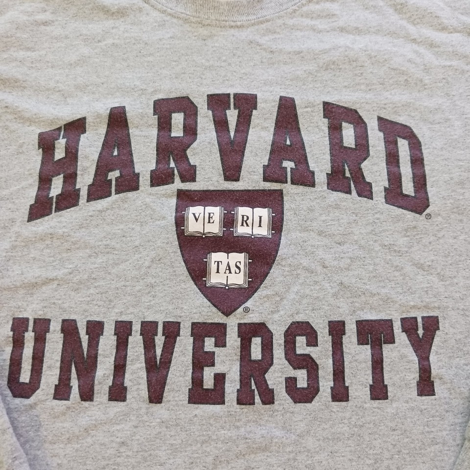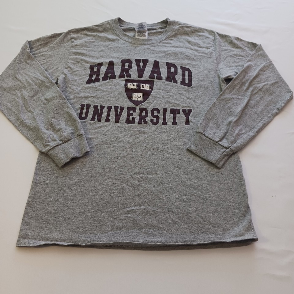 Show off your school spirit with this Gildan Ultra Cotton long sleeve T-shirt! This gray shirt features the Harvard University name and crest, making it a perfect addition to any fan's wardrobe. Made from a comfortable blend of polyester and cotton, this shirt has a crew neck and regular fit, making it a versatile choice for any occasion. It's pre-owned but still in great shape, ready to be worn and loved by a new owner. Represent your favorite university with this classic T-shirt.